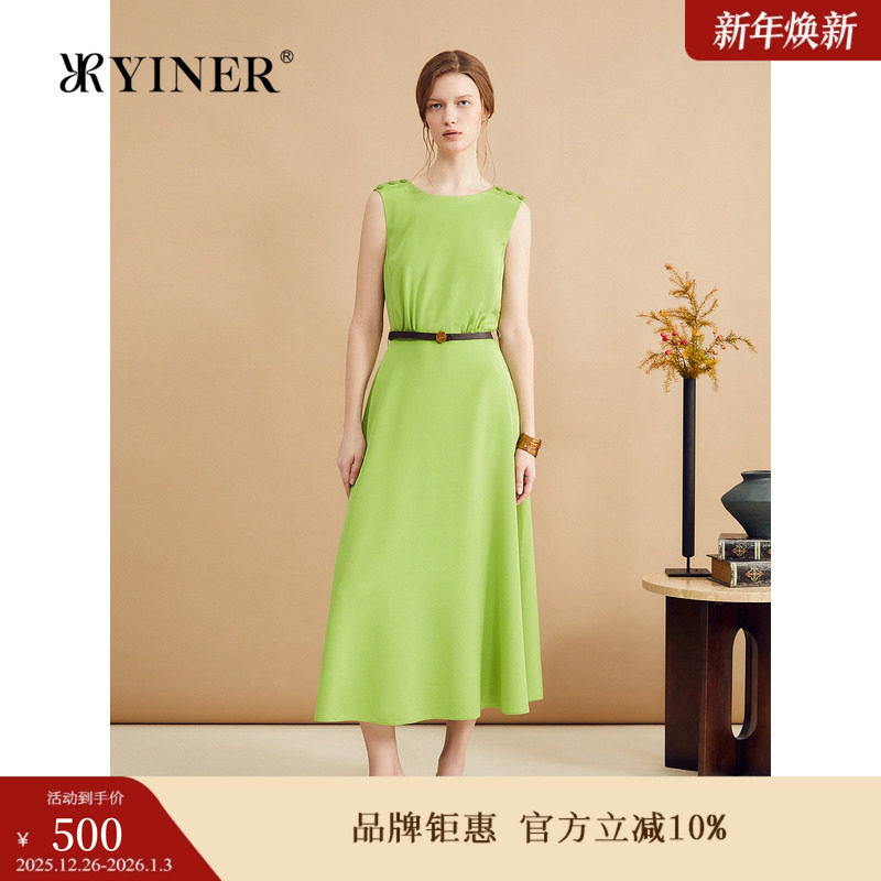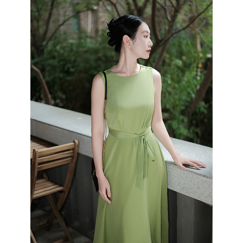 【真丝系列】YINER音儿秋季薄荷曼波桑蚕丝无袖连衣裙