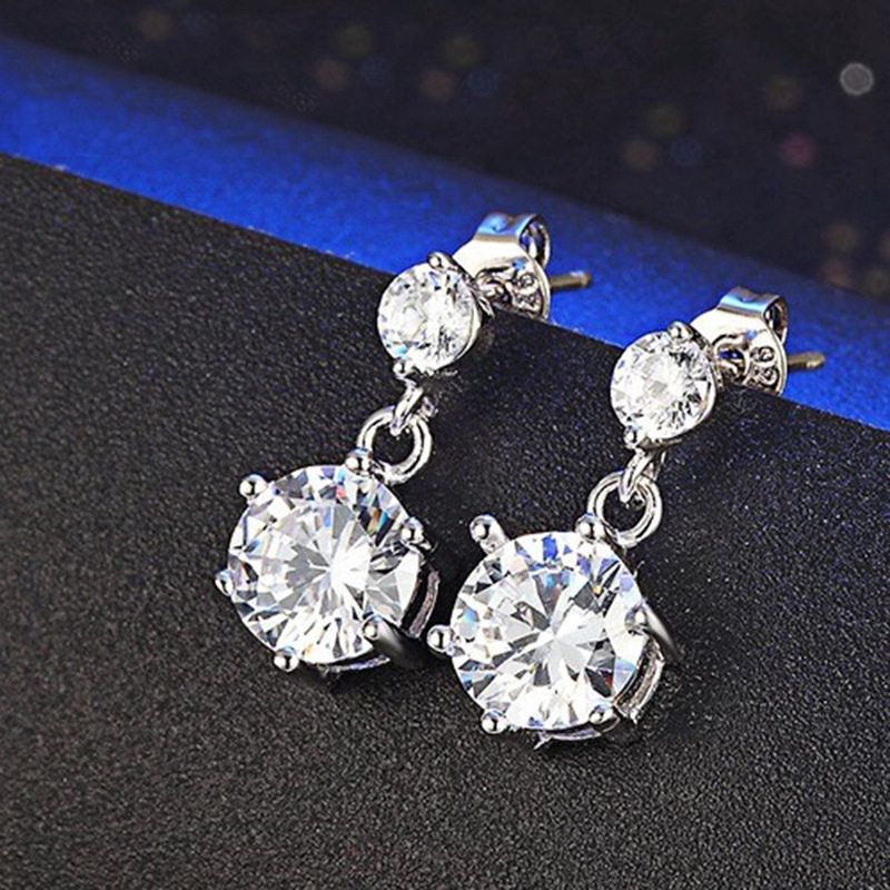 仙璨珠宝新款S925银日韩风ins风耳钉切割仿真方形锆石简约女白金