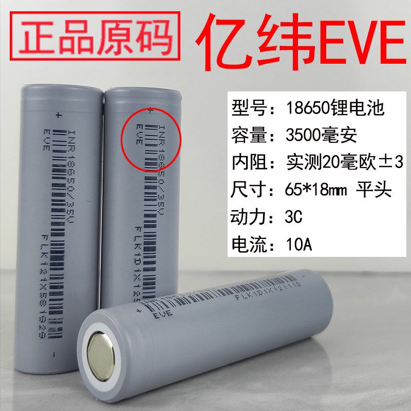 亿纬18650锂电池3500mAh大容量循环充电3.7V电动工具动力电芯原码
