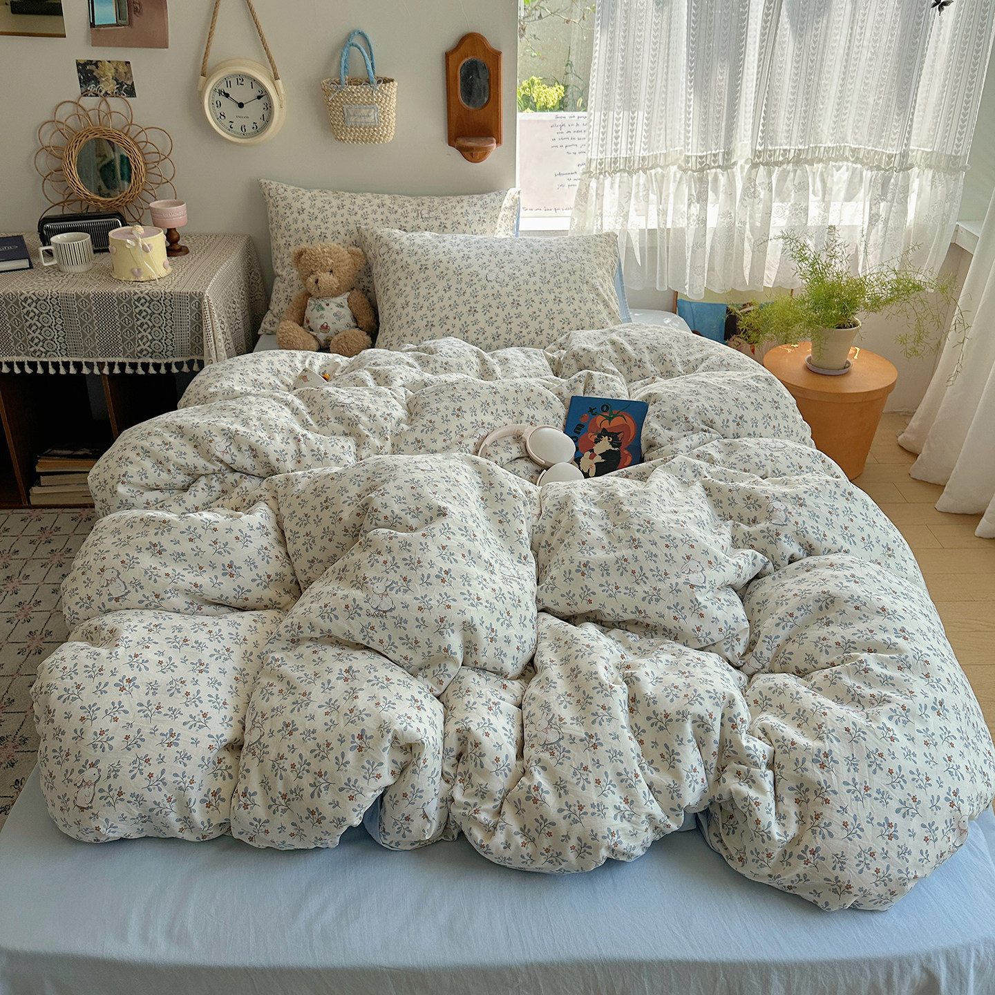 A类双层纱床上四件套纯棉全棉新款田园床单件被套被罩宿舍三件套4