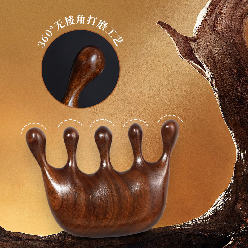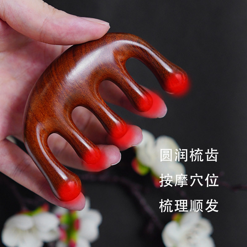 经络按摩梳子檀木圆润梳齿顺发美发梳刮痧多款五齿梳头部穴位