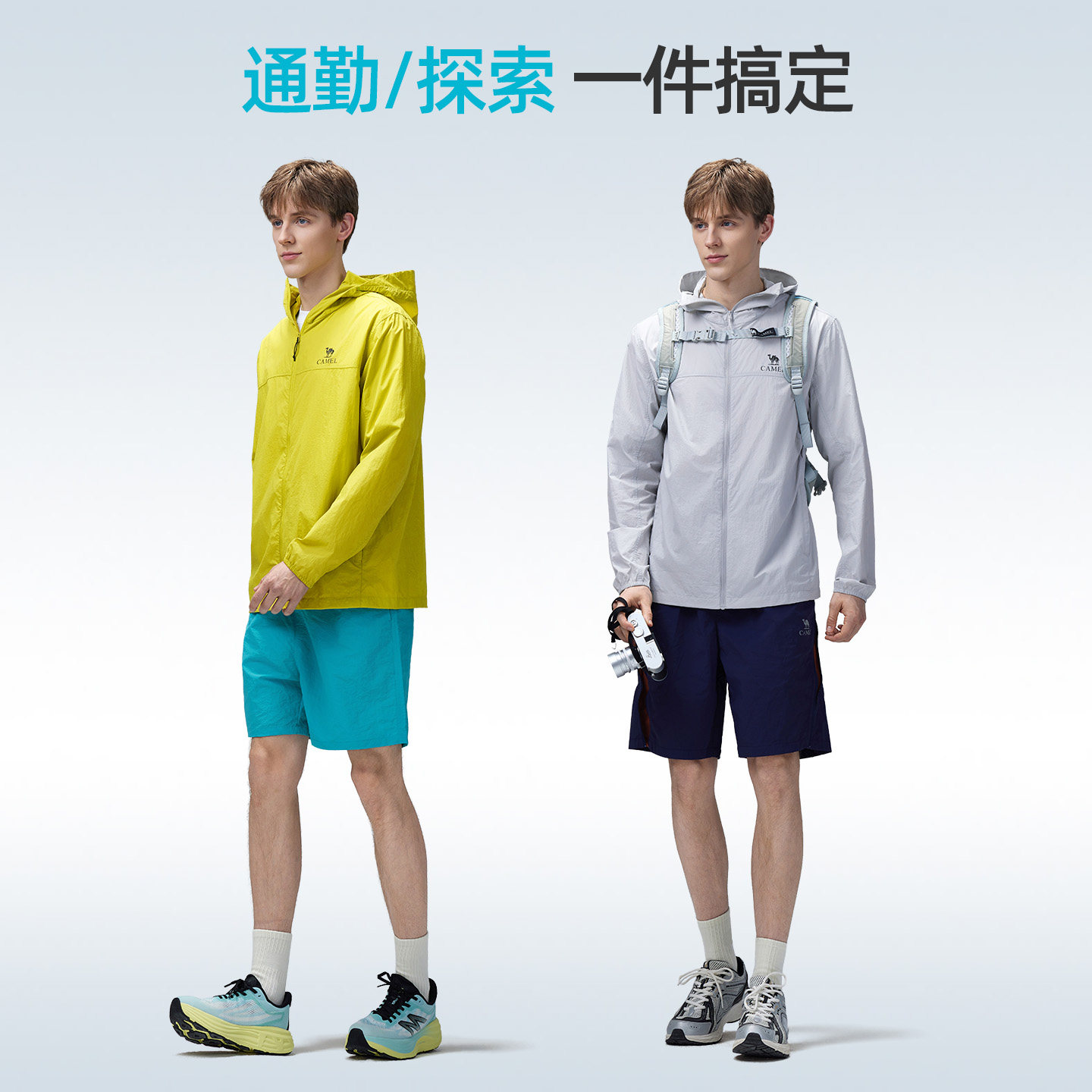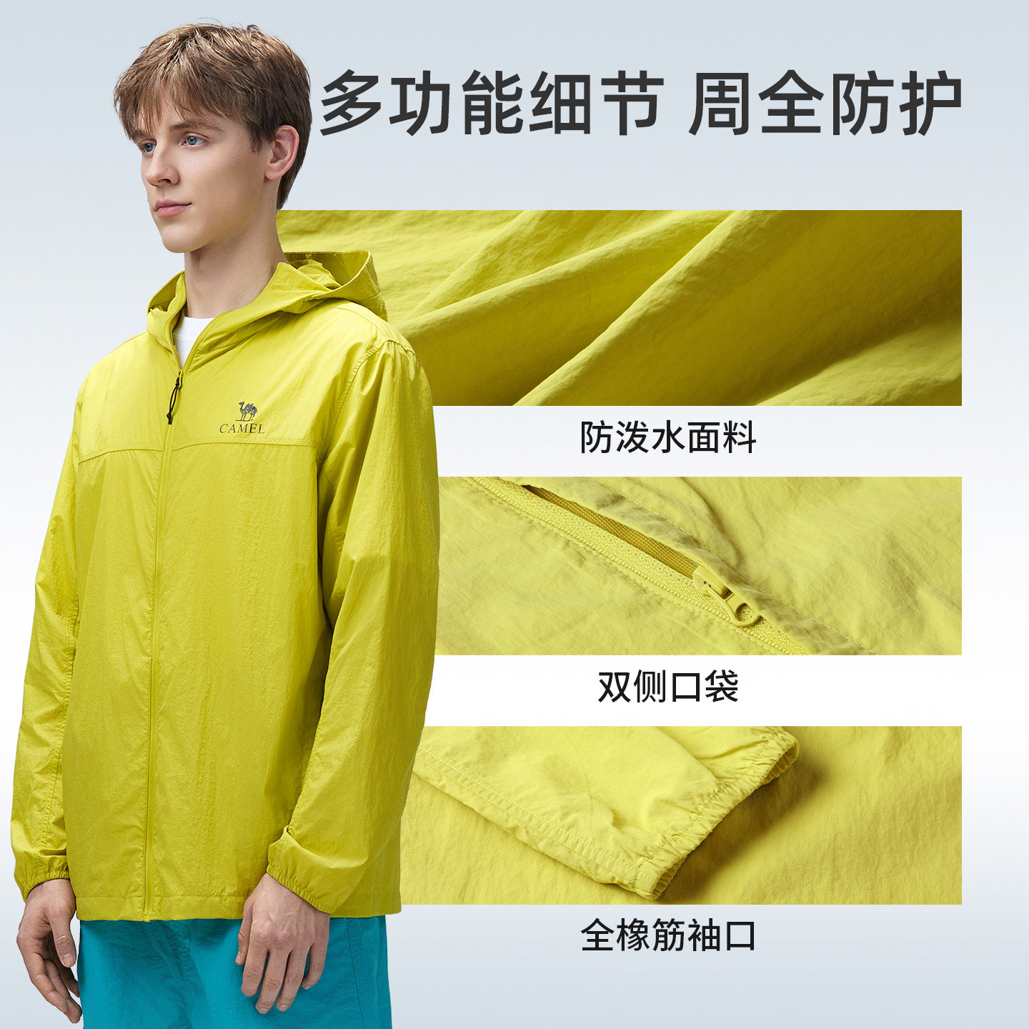 骆驼户外防晒衣2026春夏新款男款晴雨两穿凉感防泼水连帽运动外套