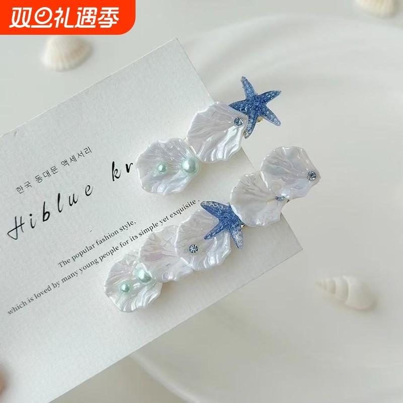 韩式ins风侧边夹刘海发夹女夏天前额头饰海星贝壳珍珠对夹一字夹