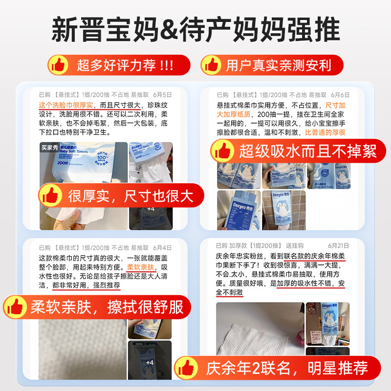 德佑婴儿绵柔巾一次性洗脸巾壁挂式擦脸巾悬挂式洁面巾非棉柔巾