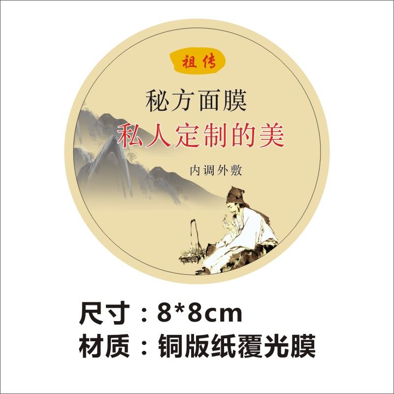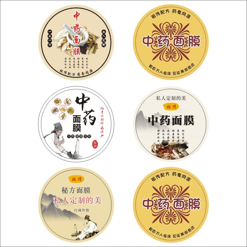 纯手工面膜标签 中药粉瓶盖贴 深层清洁不干胶 活性黑泥封口贴C