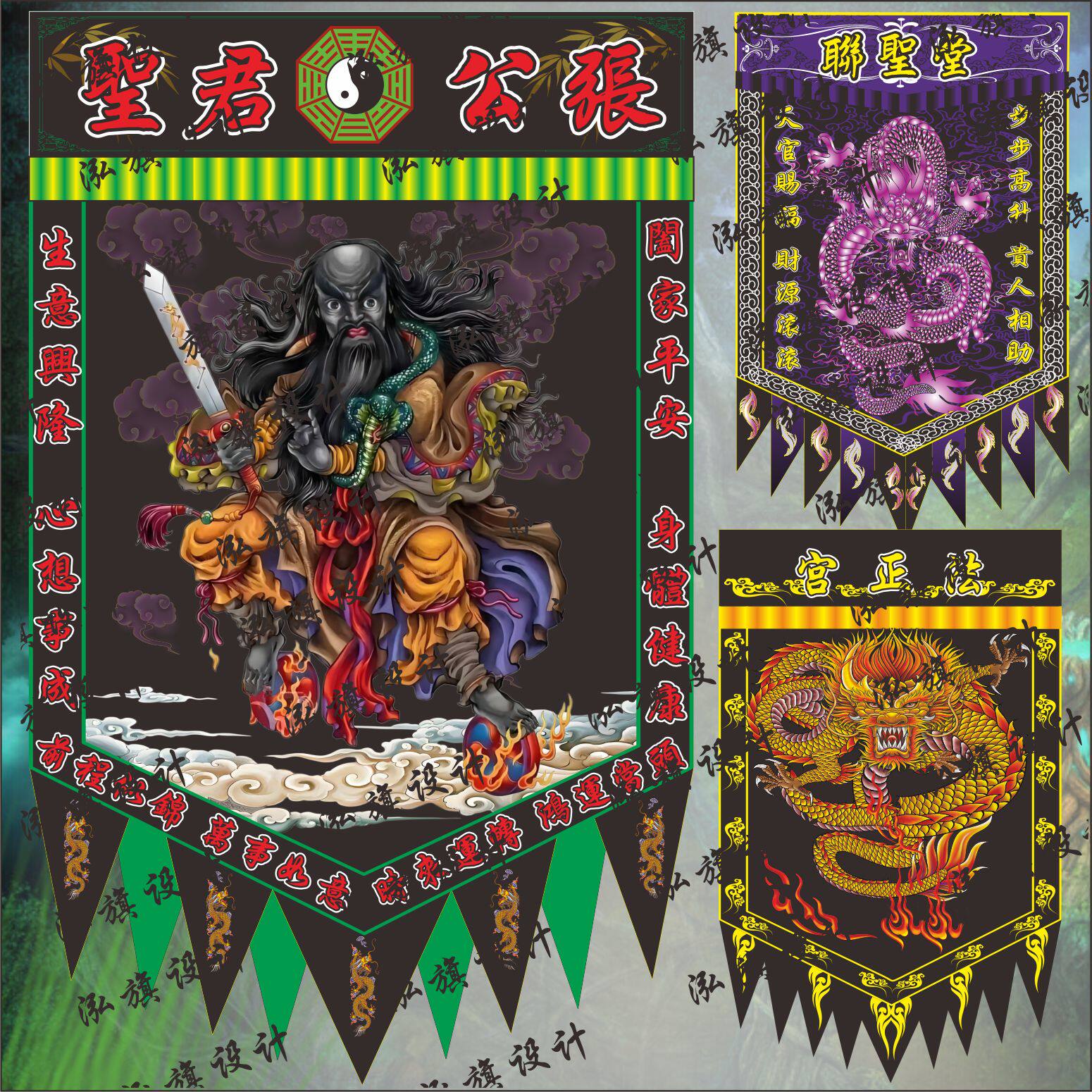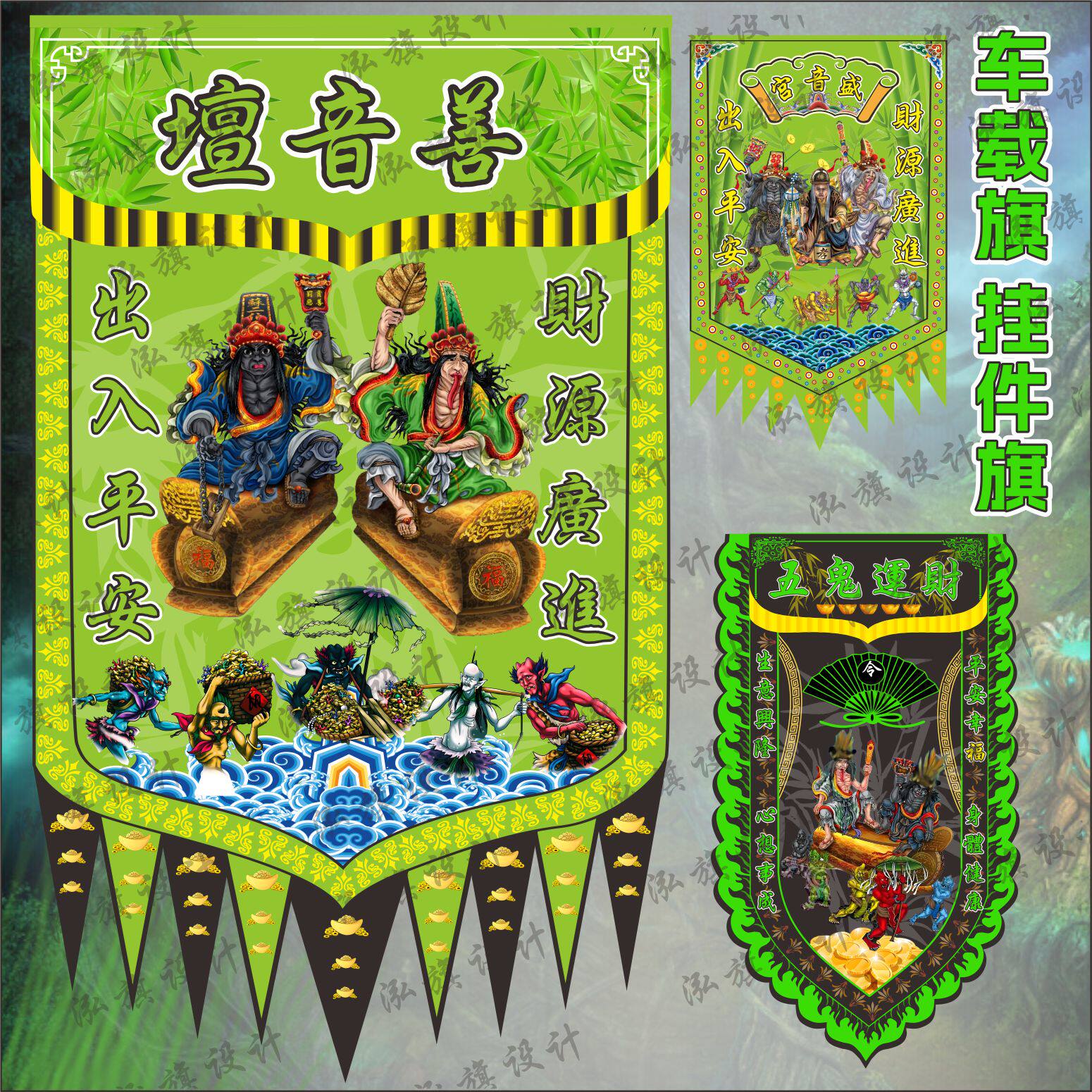 定做马来西亚神壇用品车载旗迷你摆件车挂旗大二三爷串旗免费设计
