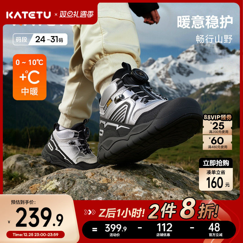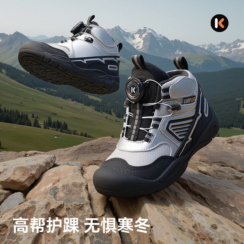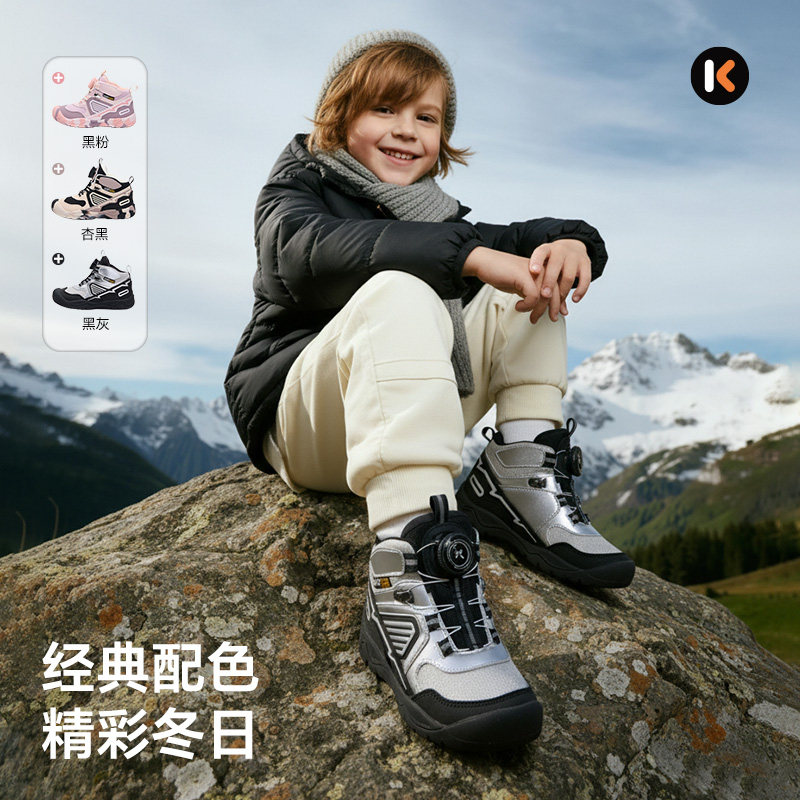 卡特兔儿童户外运动鞋2025冬季旋钮扣防滑耐磨加绒保暖儿童棉鞋