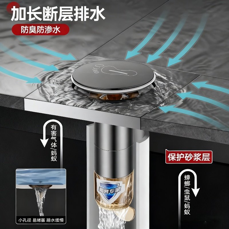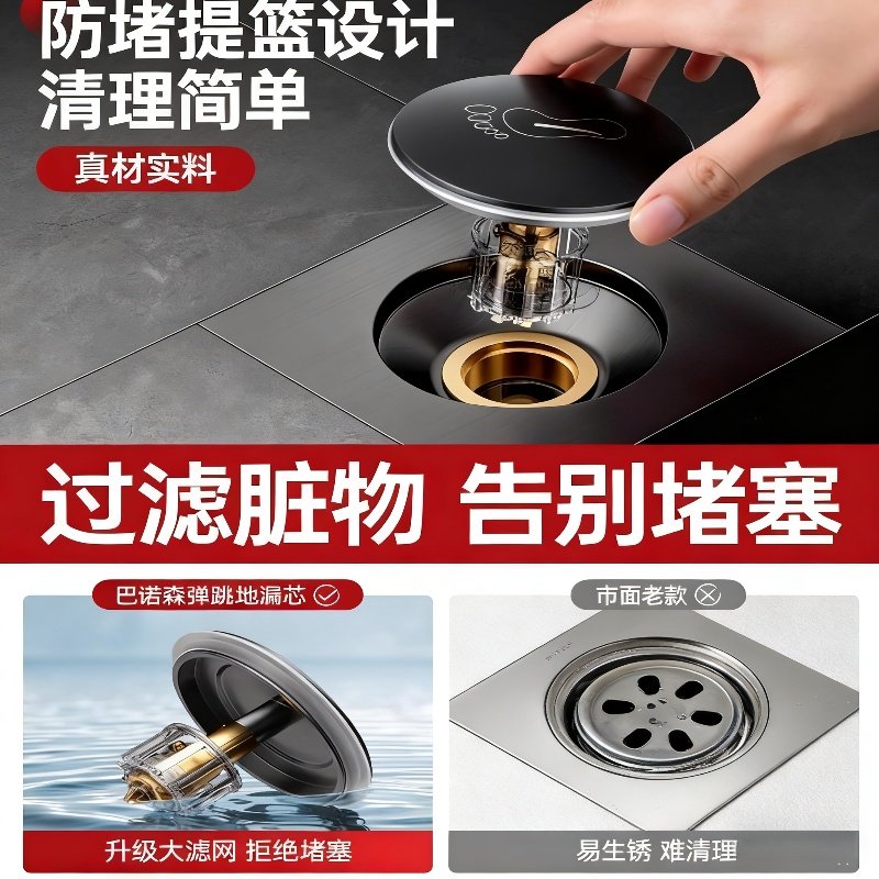 弹跳地漏防臭器卫生间通用加长弹跳芯下水道防返臭神器防虫封口盖