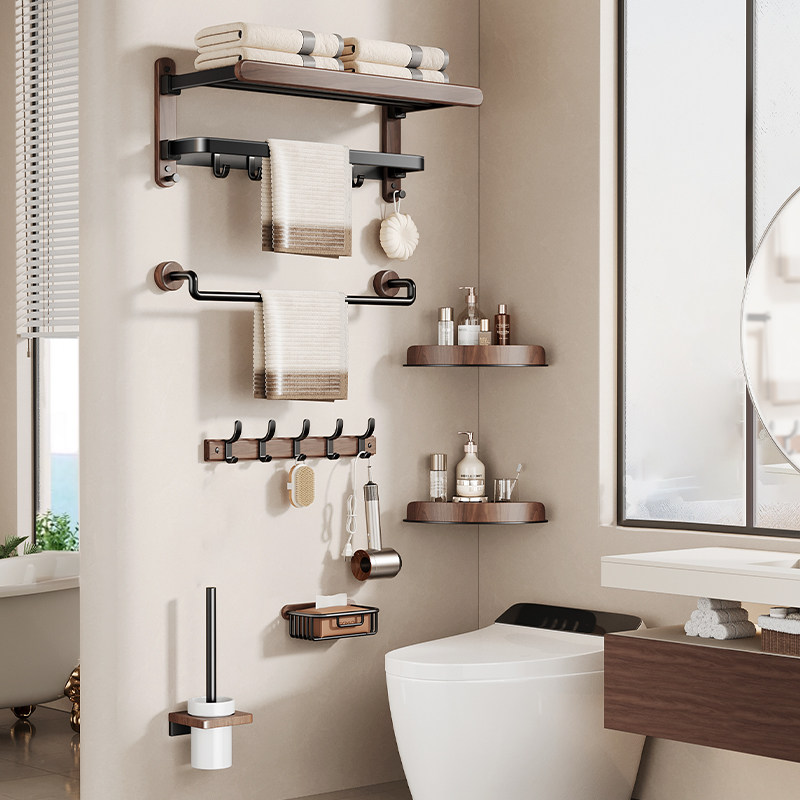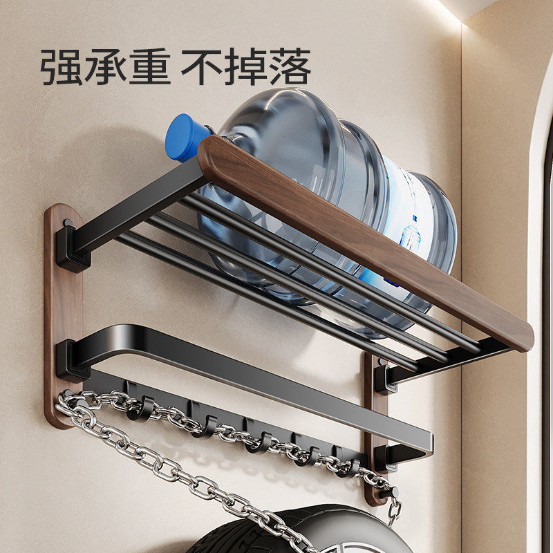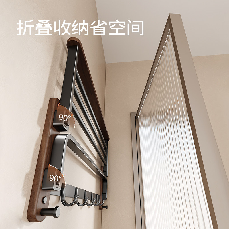 胡桃木毛巾架浴室置物架免打孔厕所高端卫生间洗手间实木浴巾架子