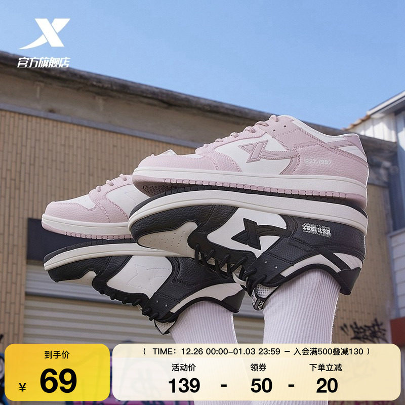 特步板鞋女鞋冬季情侣款潮流百搭熊猫鞋子运动鞋百搭休闲鞋男鞋
