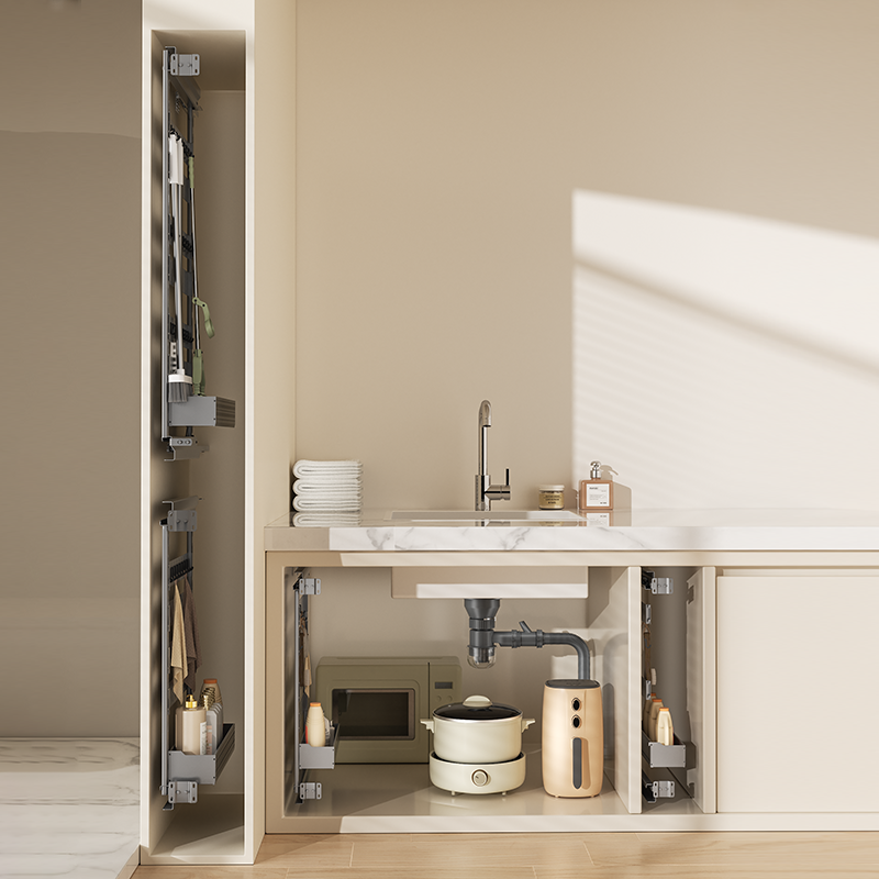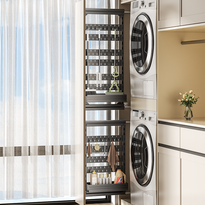 厨房窄柜橱柜洞洞板拉篮洞洞板置物架极窄伸缩拐角抽拉式一体收纳