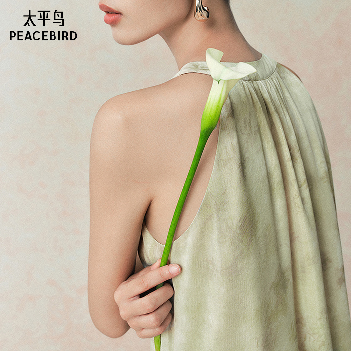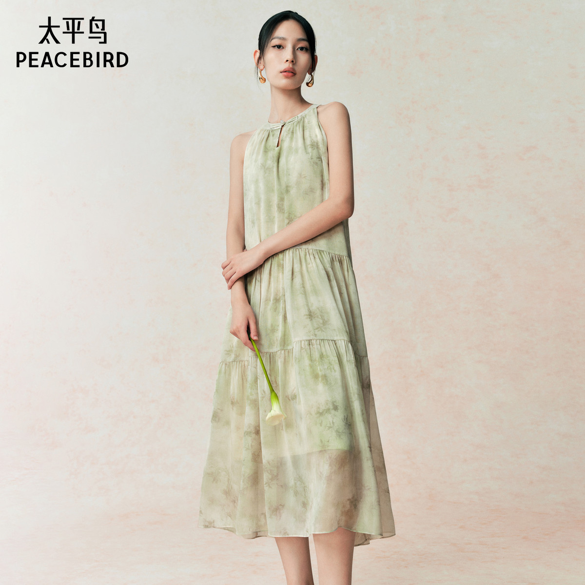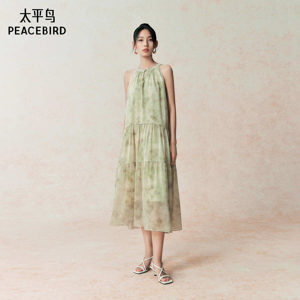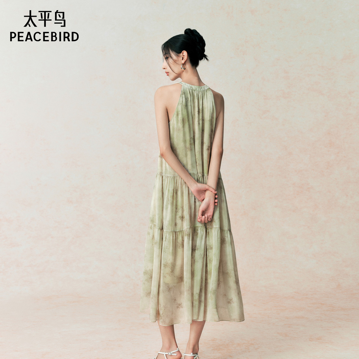太平鸟中式挂脖连衣裙2025夏季款法式无袖吊带裙度假小众长裙