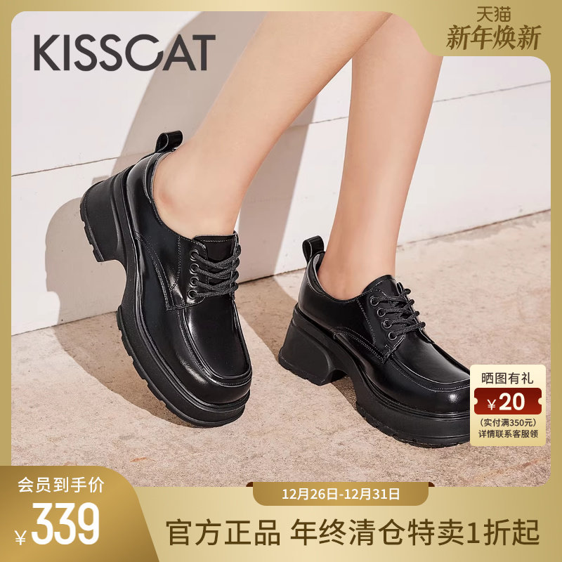 KISSCAT接吻猫秋季新款奥利奥秀气小皮鞋方头粗跟乐福鞋女