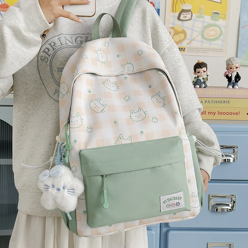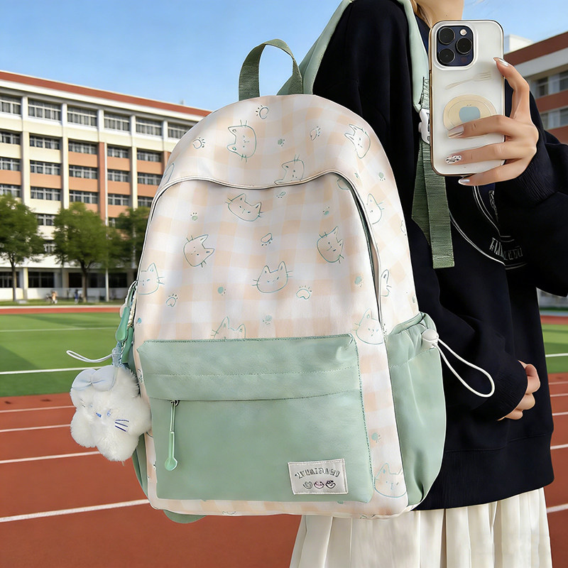 书包外出旅游研学双肩包小学生中学生大学生初高中帆布薄荷绿黑色