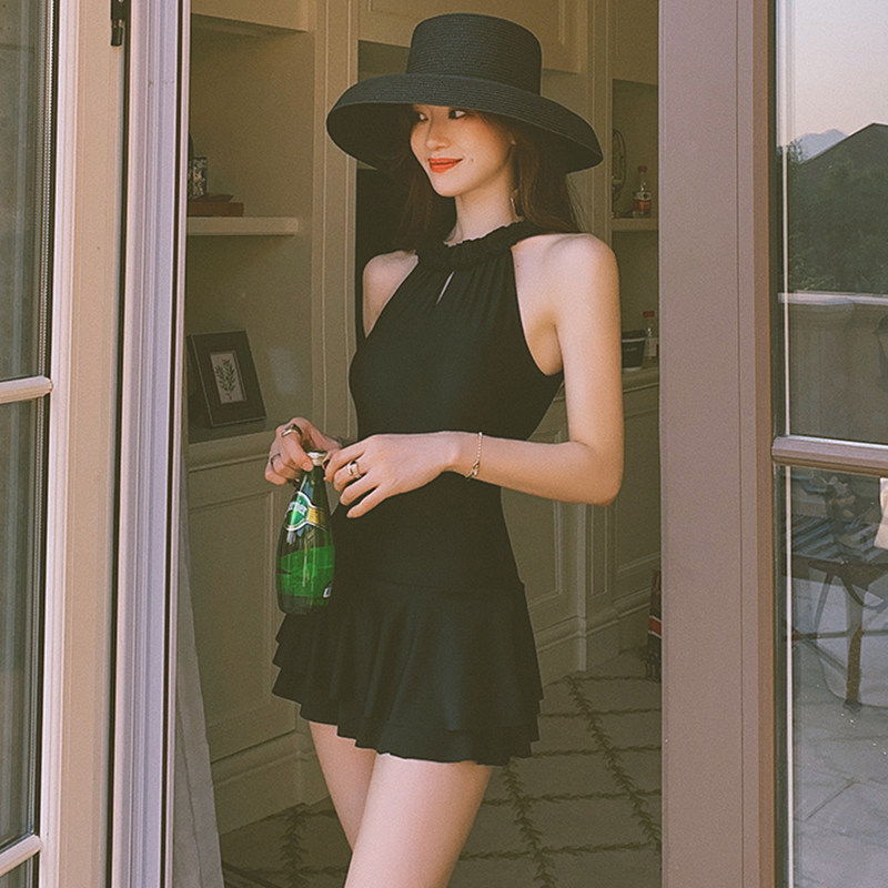 挂脖连体泳衣女款2026新款夏微胖MM遮肚显瘦法式高级感泡温泉泳装