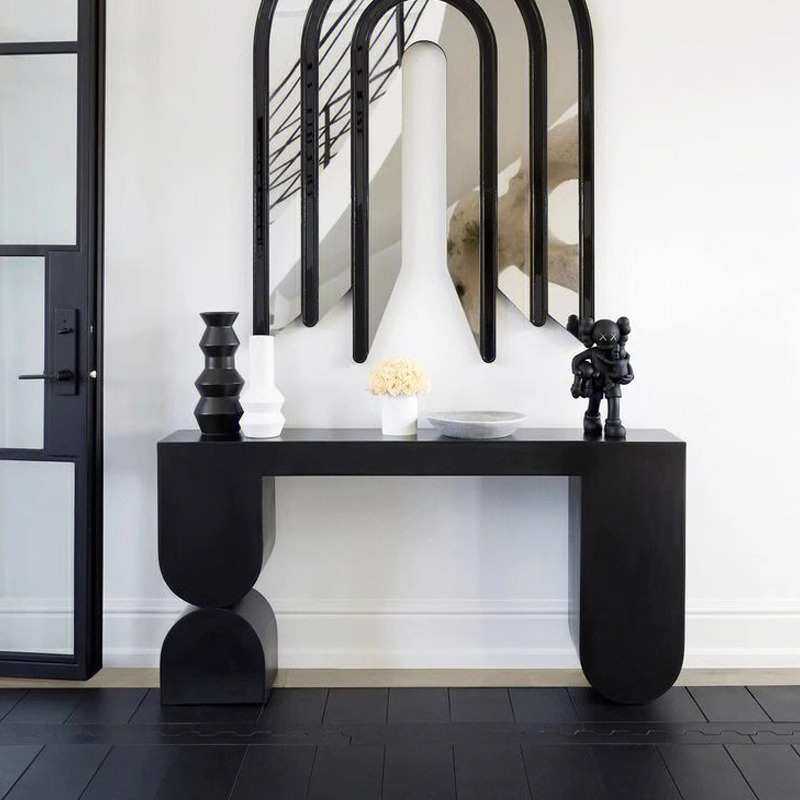 法式复古实木雕刻玄关柜门厅隔断柜美式欧式黑色餐边柜家用储物柜