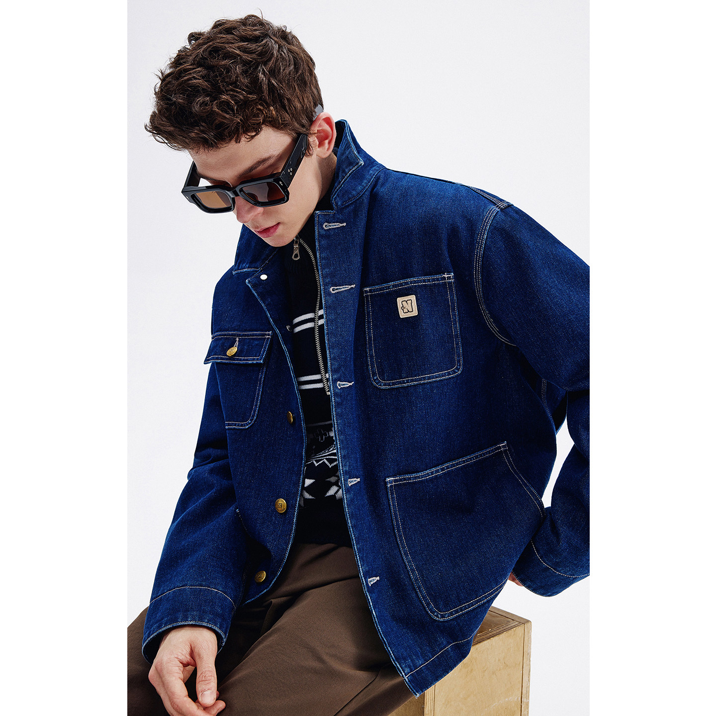Navigare意大利小帆船水洗牛仔夹克男春秋季新款休闲工装茄克外套