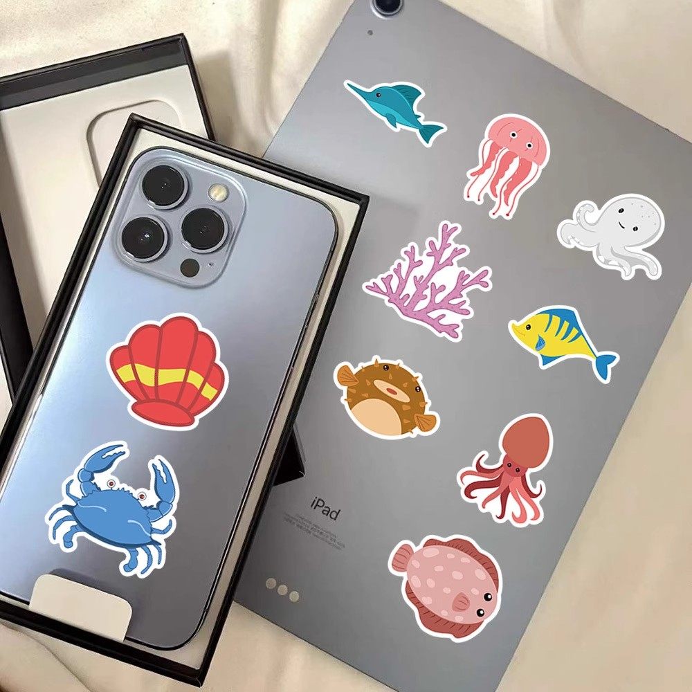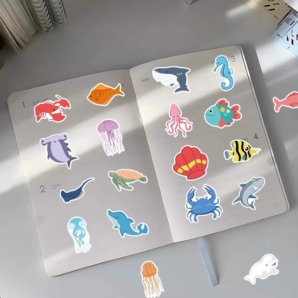 【大图释官方授权】120张海洋生物世界水族馆贴纸鱼类海豚螃蟹章鱼儿童玩具diy手账本自粘装饰卡通图案小贴画