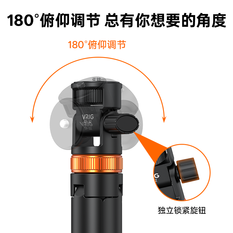 VRIG唯乐格TP-32灯架支架三脚架落地便携机支架手机微单单反户外拍照摄影直播vlog视频拍摄补光伸缩三角架