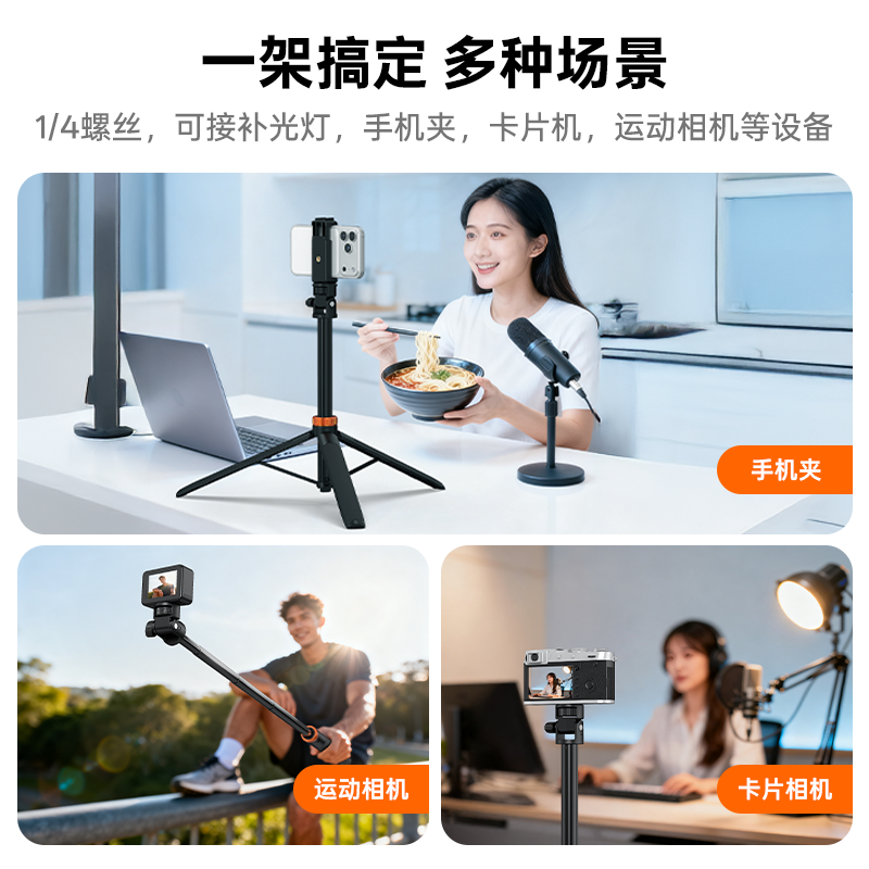 佑粒2025年落地三脚架自拍杆手机相机通用支架蓝牙拍摄冷靴口直播1.8m双机位拍摄防抖便携拍立得pocket3A69S