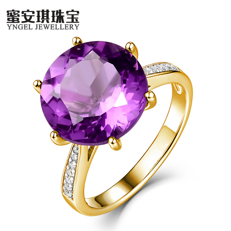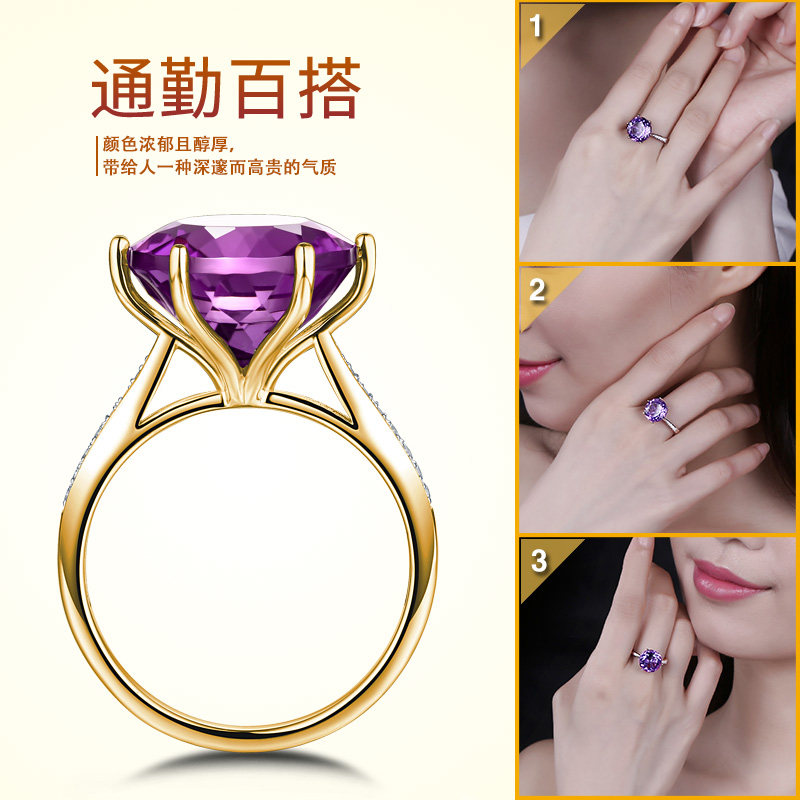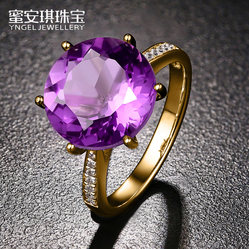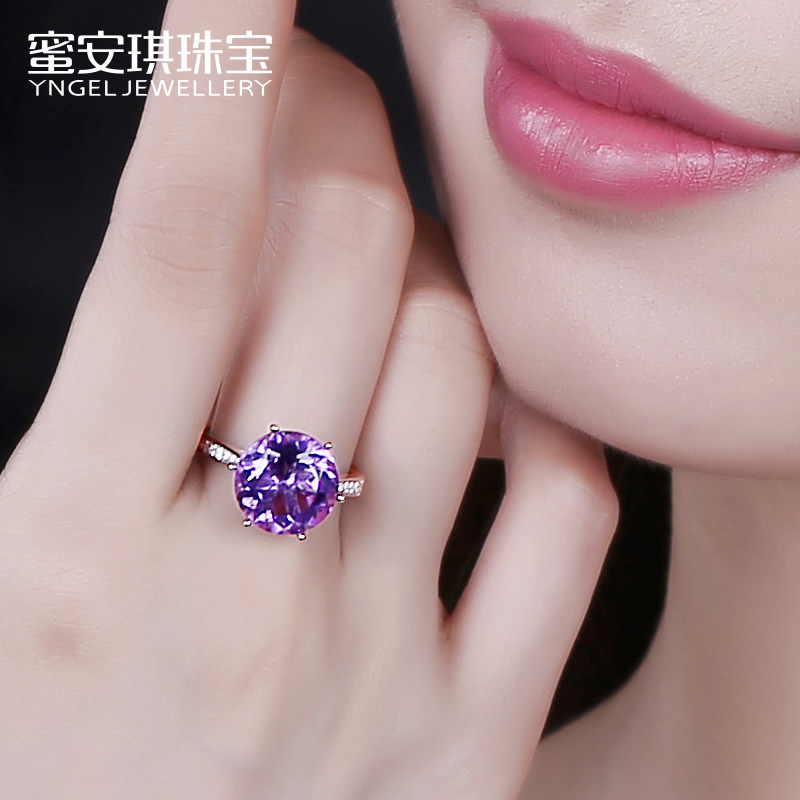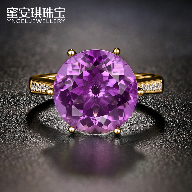 蜜安琪 6.24克拉天然紫晶戒指 18K黄金戒臂钻石女戒水晶彩宝首饰
