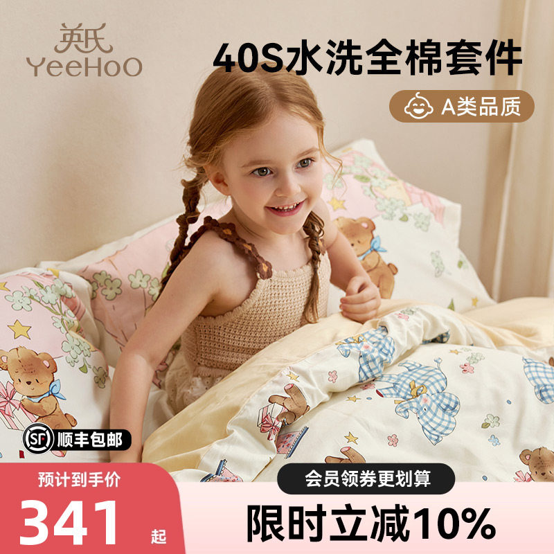 英氏儿童四件套纯棉床品全棉水洗被套床上用品三件套床单伊森童话