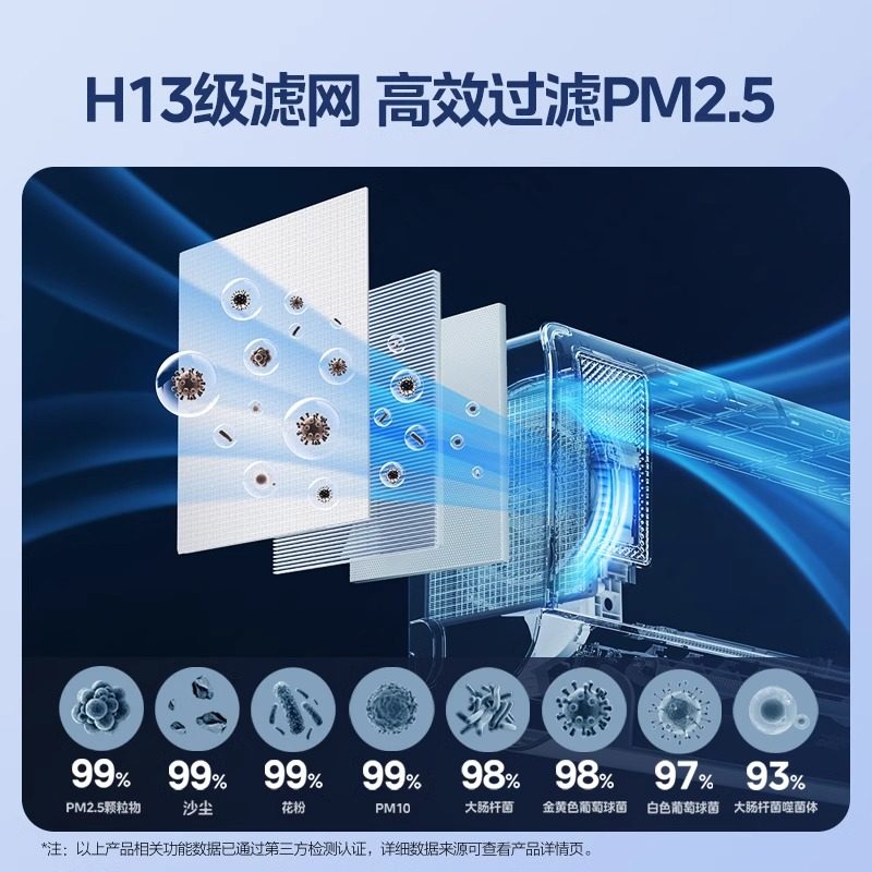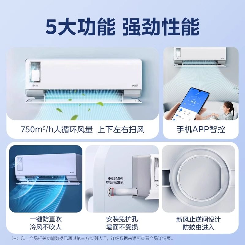 【静新风】美的新风空调挂机大1.5匹1匹新一级能效家用冷暖除湿