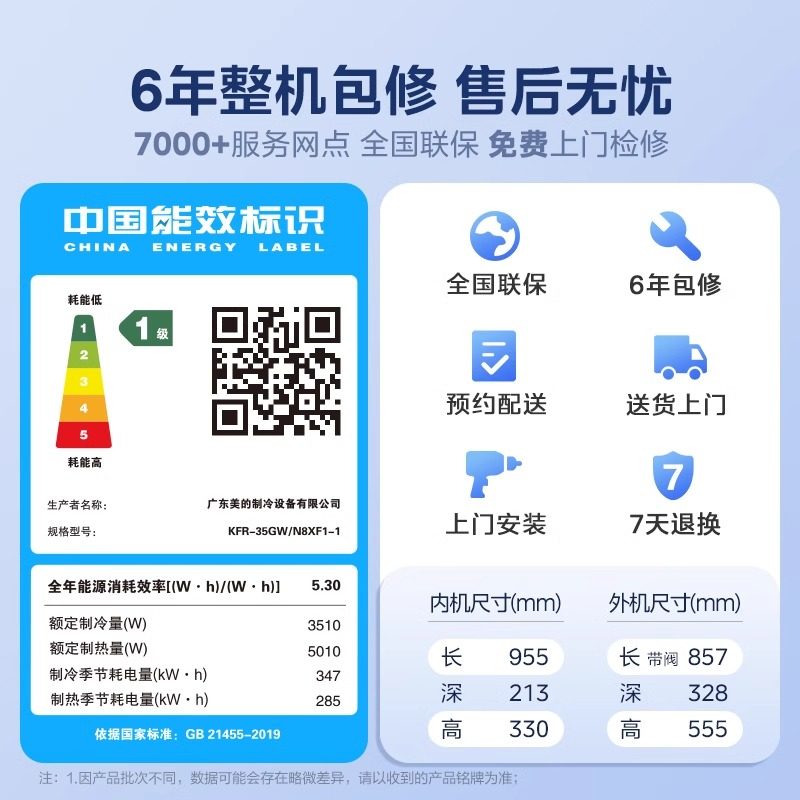 美的空调酷省电二代大1.5匹1匹一级能效变频冷暖家用挂机官方正品