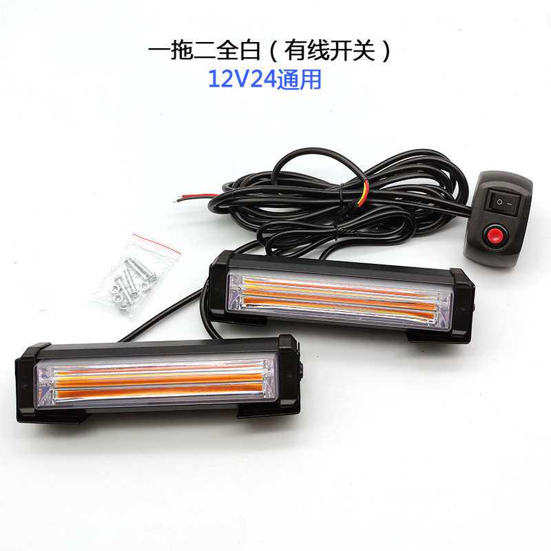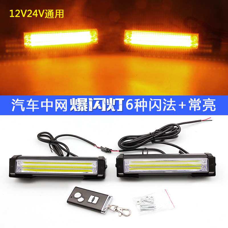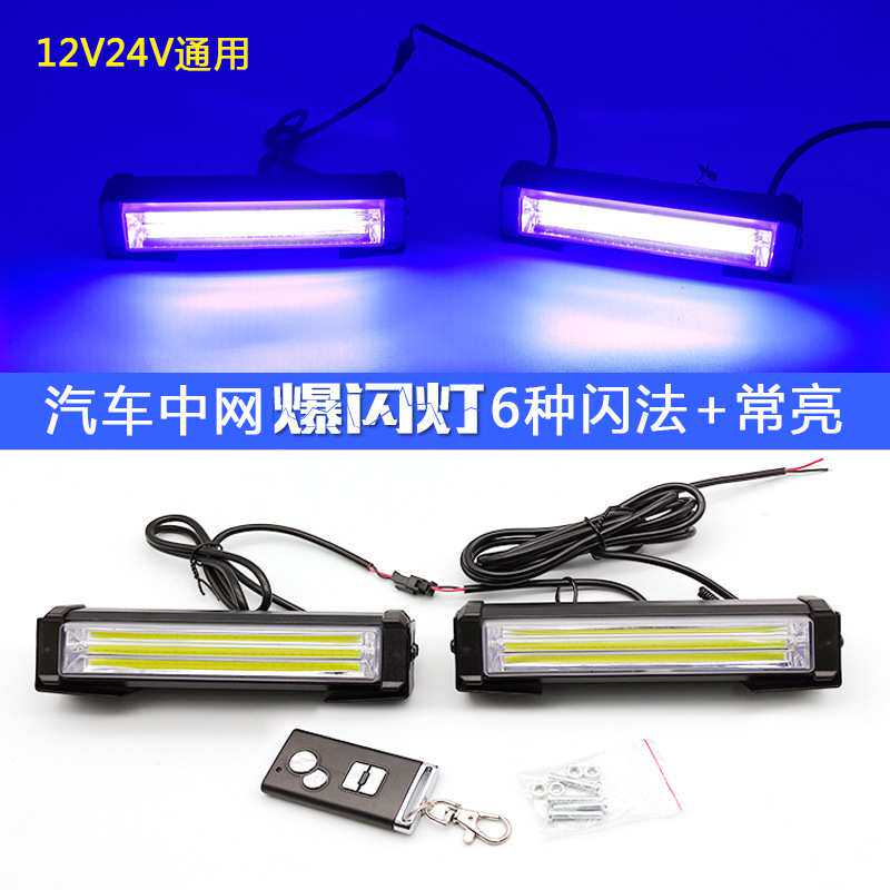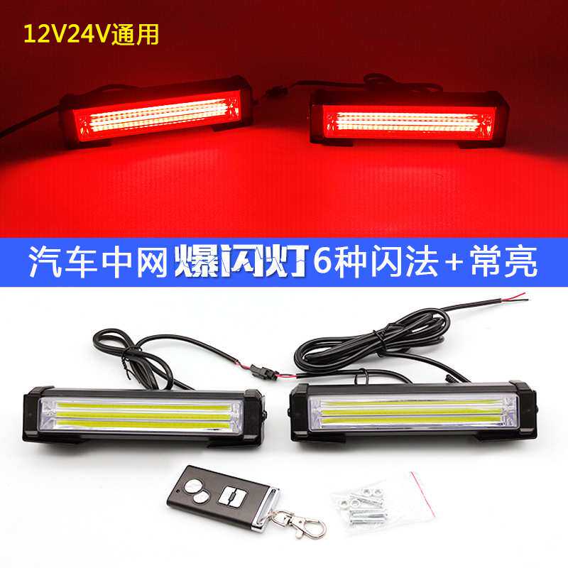 汽车中网爆闪灯无线遥控变色12v-24v警示灯一拖二COB日行灯开道灯