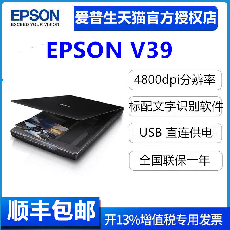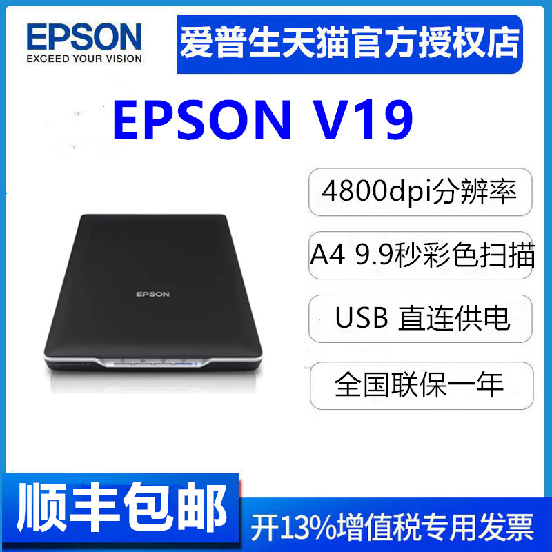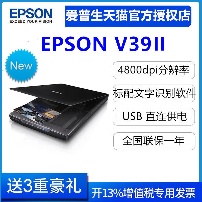 新品爱普生V19ii/V39ii平板扫描仪彩色高清文档合同A4照片办公家用送OCR文字识别软件