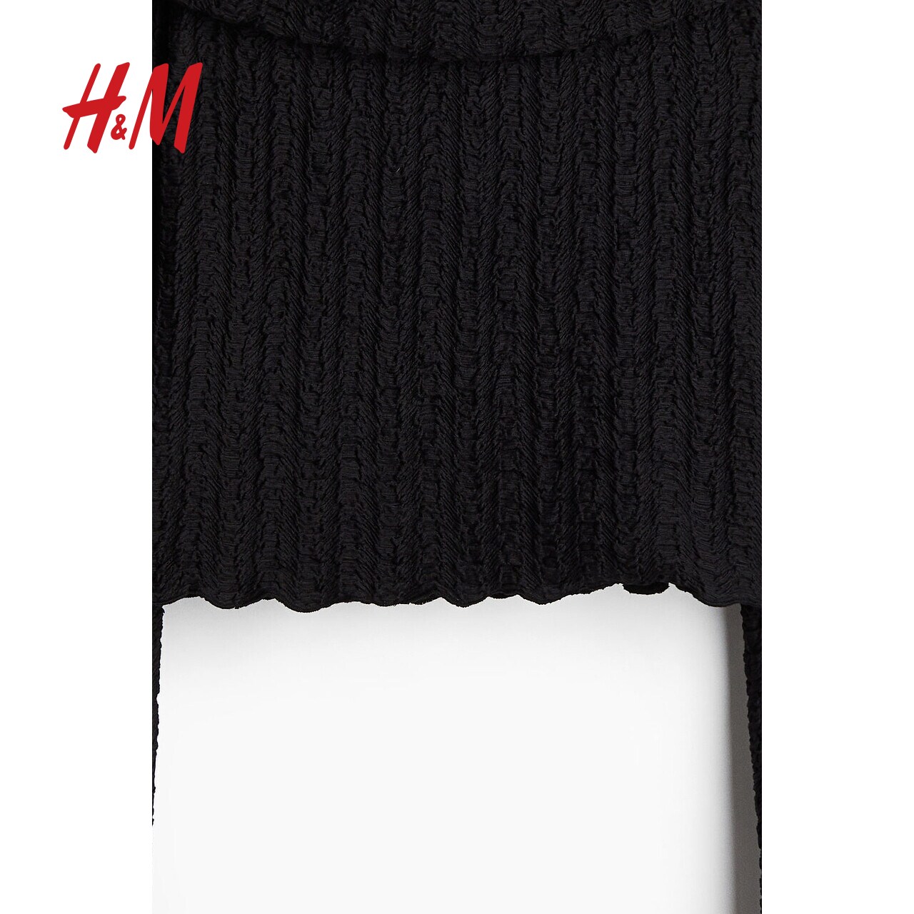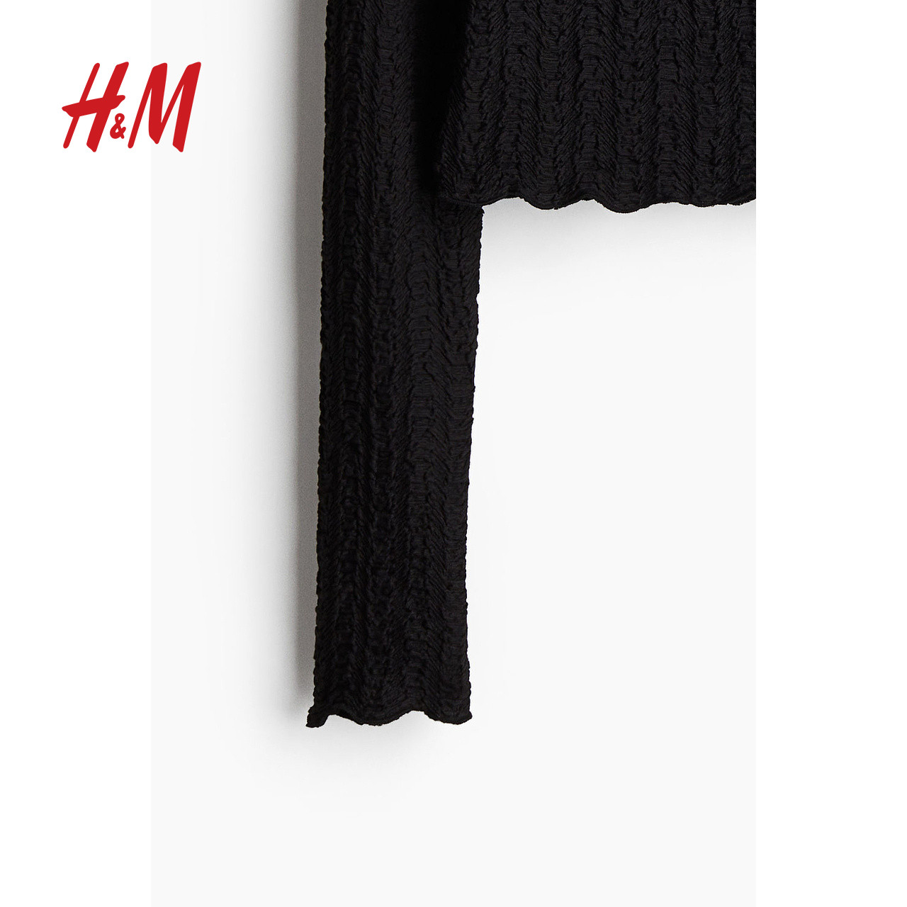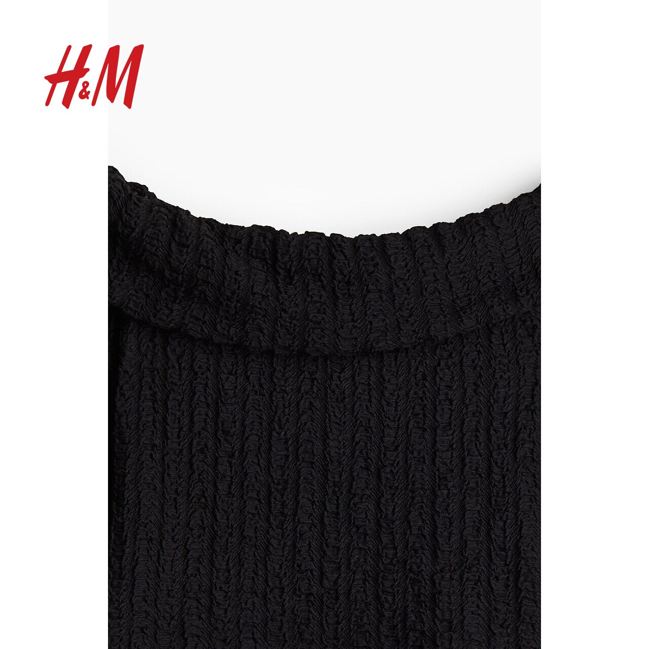 HM女装T恤春季时尚一字肩节日礼服纹理感露肩上衣1274441