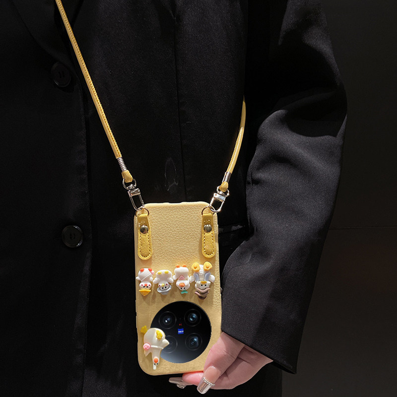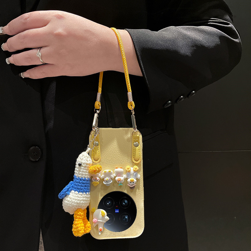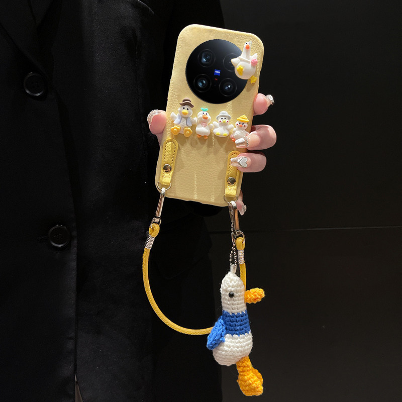 可爱鸭子公仔适用vivox200promini手机壳x100s立体x90s斜挎x80可背x70t挂件x60t皮纹vivo仿皮卡通挂绳硅胶软p