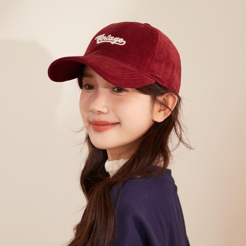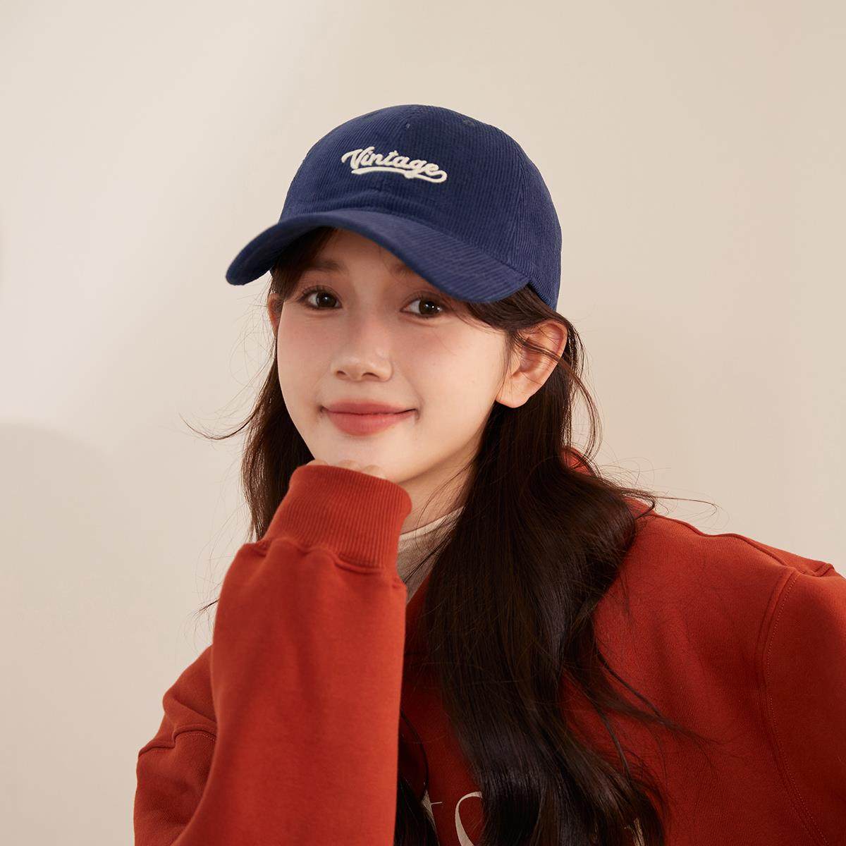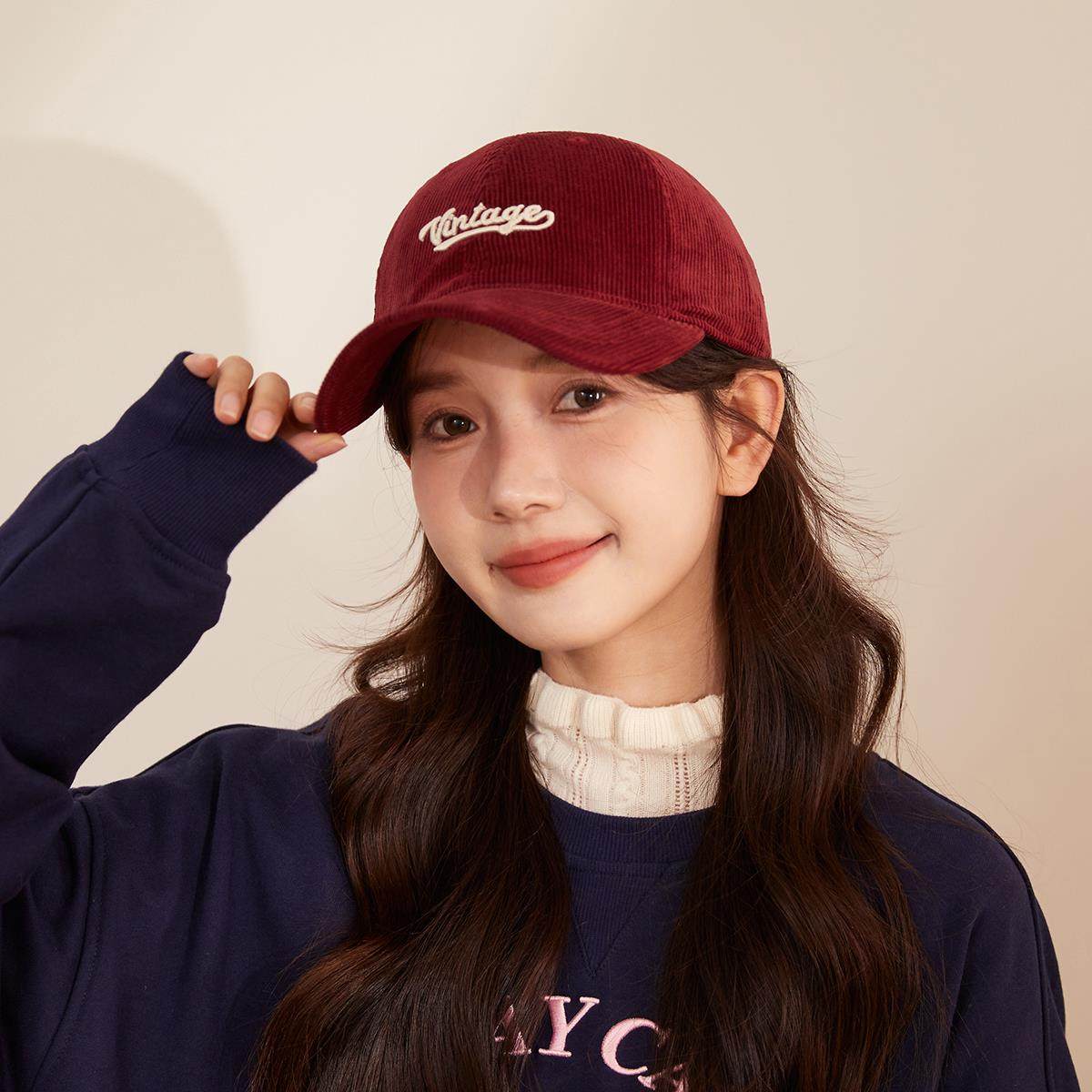 秋冬灯芯绒棒球帽女酒红色鸭舌帽显脸小帽子男橘色蓝色咖啡色紫色