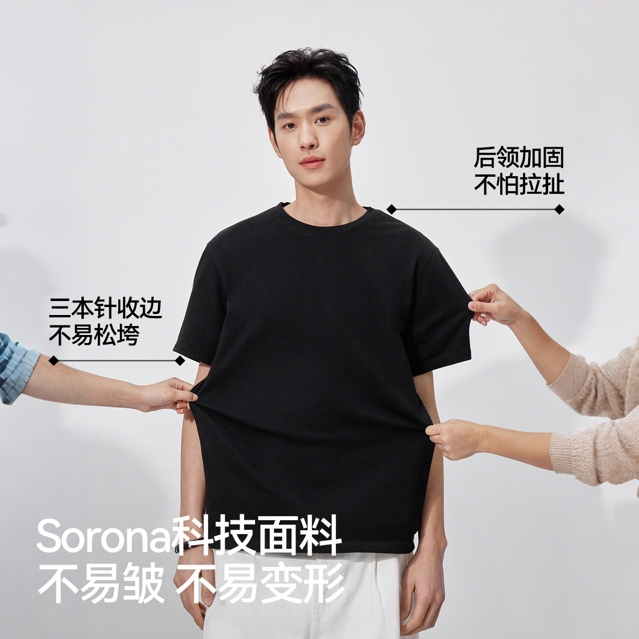森马短袖T恤男装新款纯棉半袖情侣纯白圆领凉感白t休闲打底衫贴身