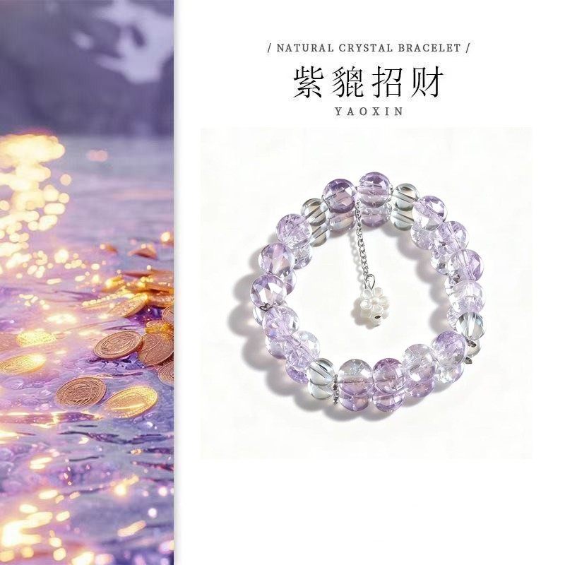 原创招财多宝天然手链黄白紫黑粉色水晶手串大珠子男女款高级感