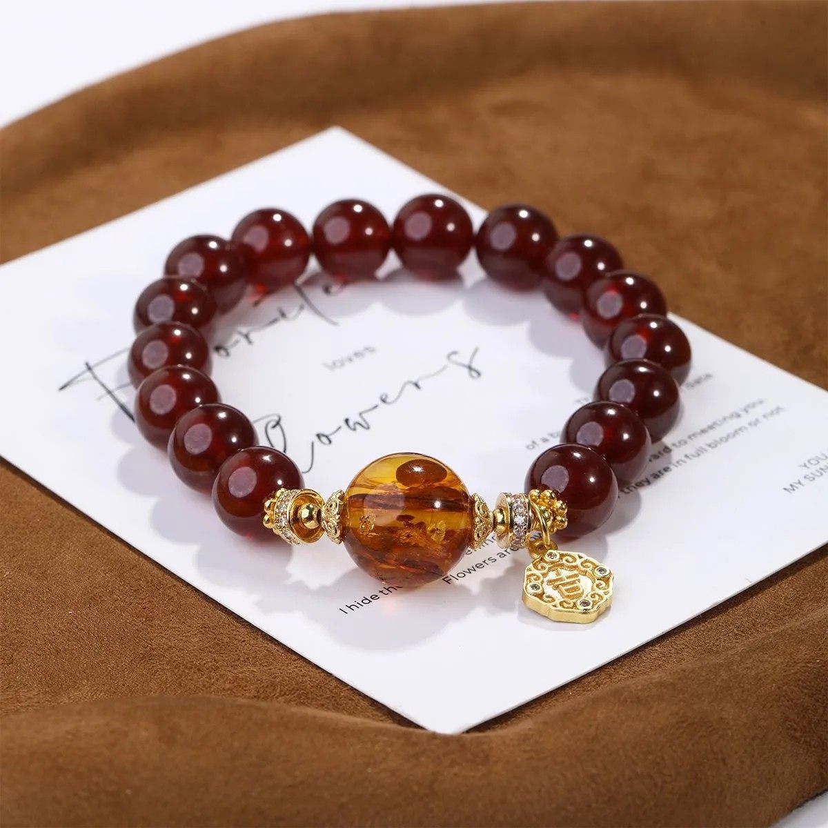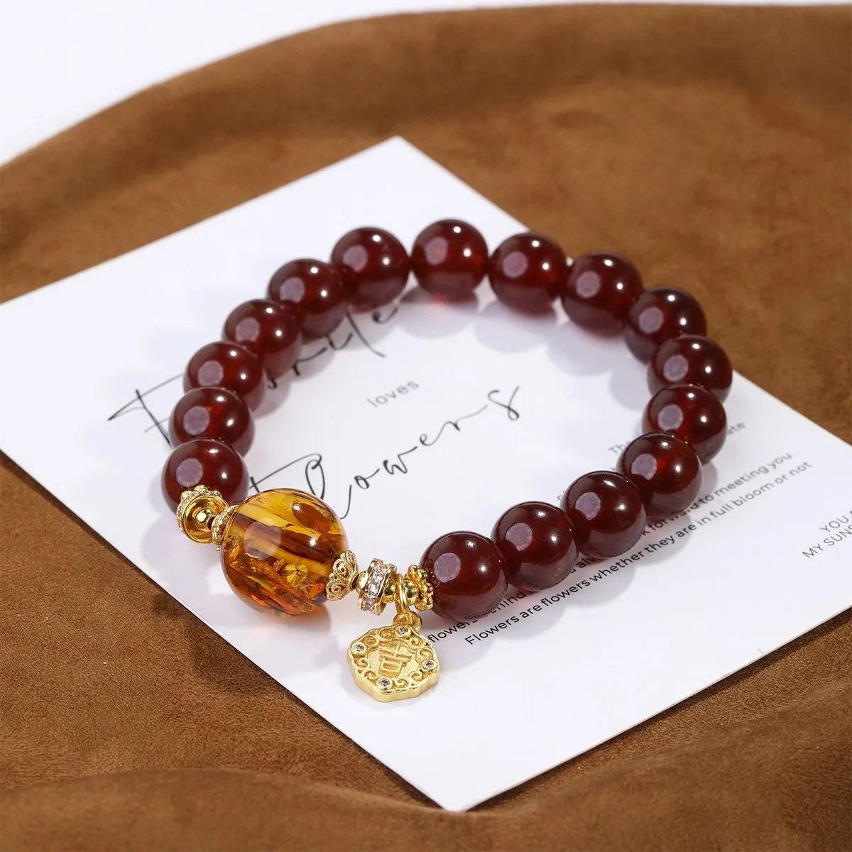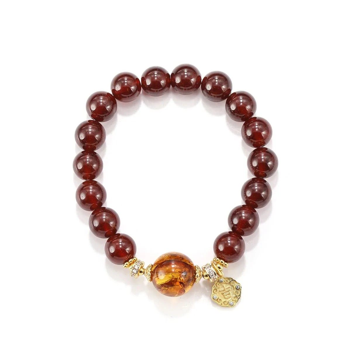 【赤金】酒红色石榴石花珀珠宝原创水晶手串天然单圈转运手链