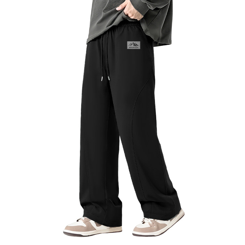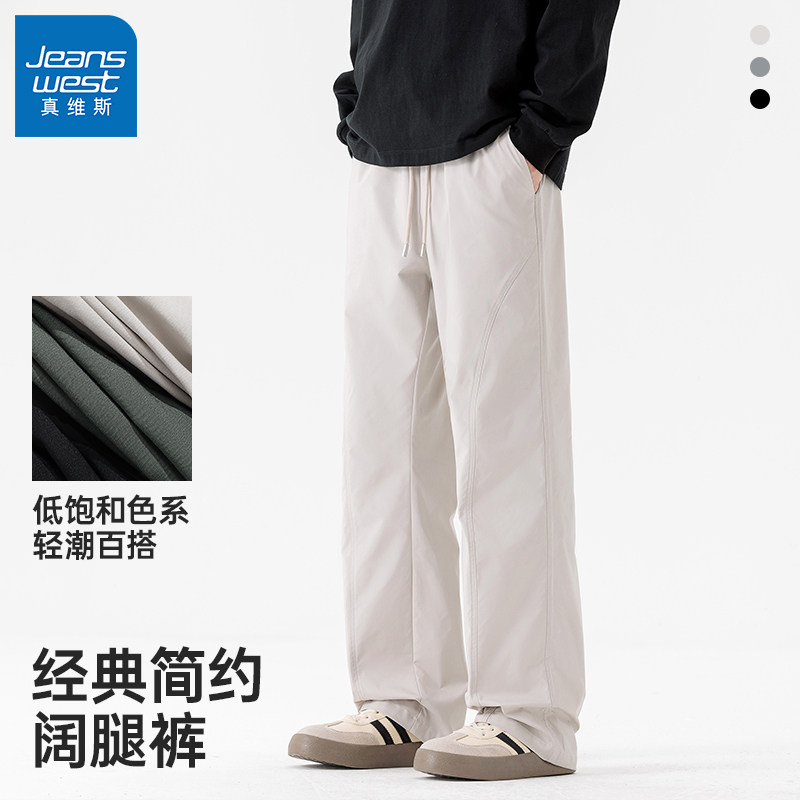 GV真维斯黑色裤子男春秋季宽松休闲直筒长裤男士垂感百搭阔腿裤A