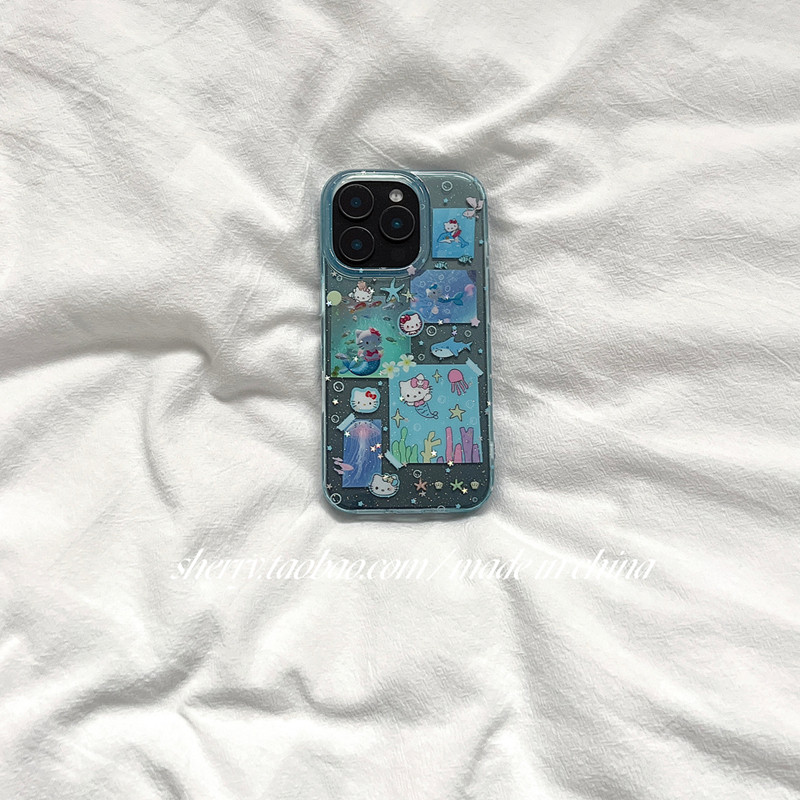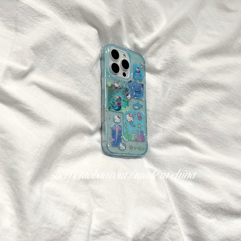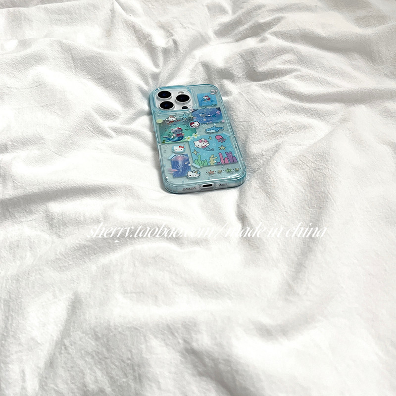 SHERRY*ins风夏日透蓝色海底水母美人鱼kt猫适用于苹果17ProMax手机壳iPhone16Pro小众15少女心14简约13清新