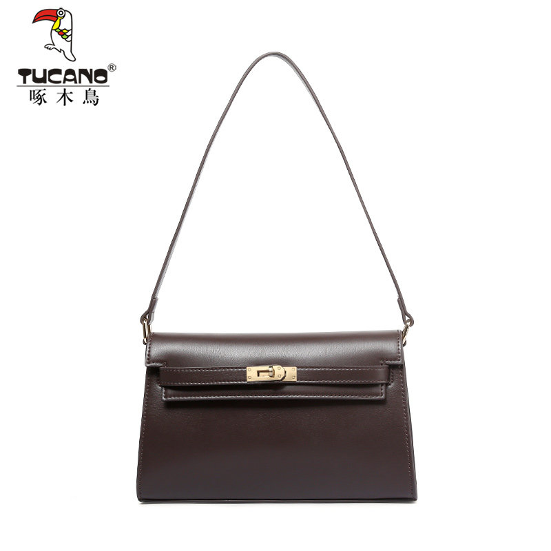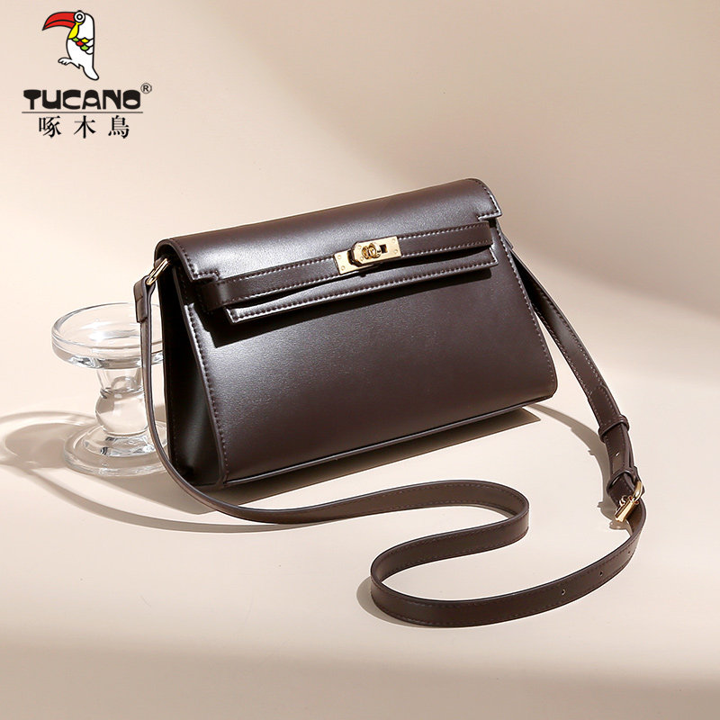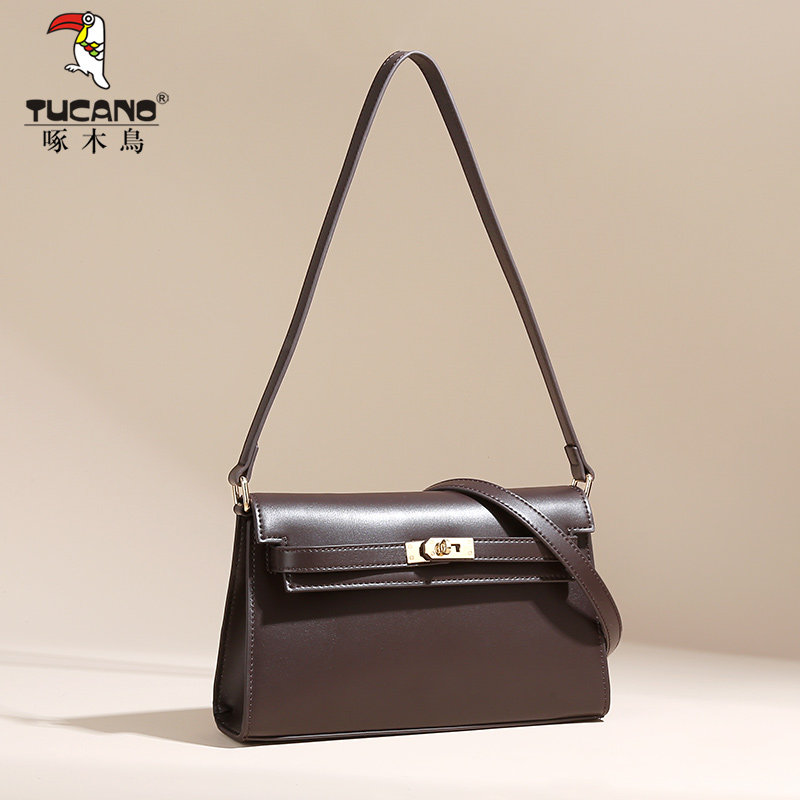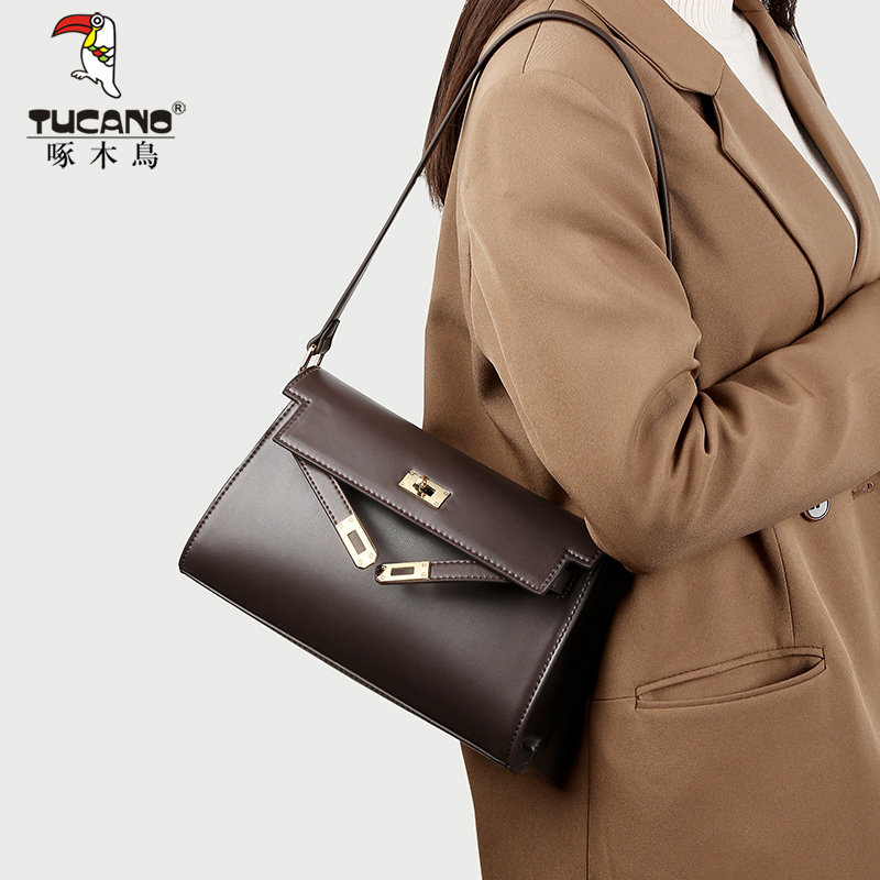 [特卖]啄木鸟真皮腋下包女士2025新款凯莉包高级感单肩斜挎小方包