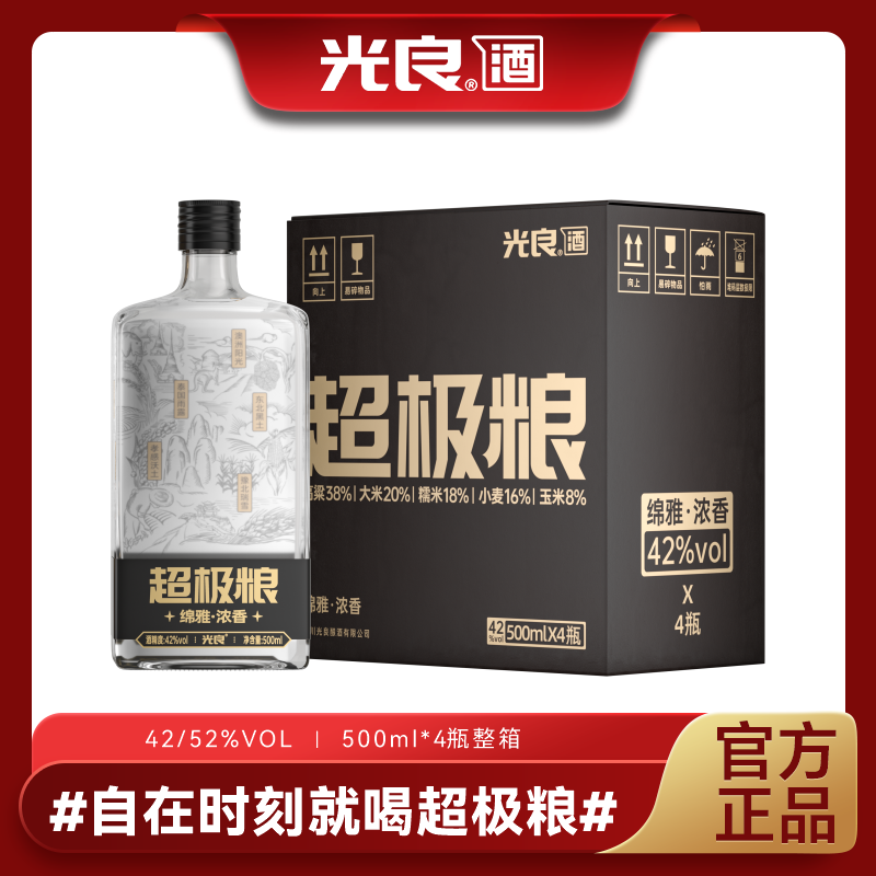 【官方正品】光良超极粮 42度浓香型白酒 纯粮酿造好酒500ml每瓶