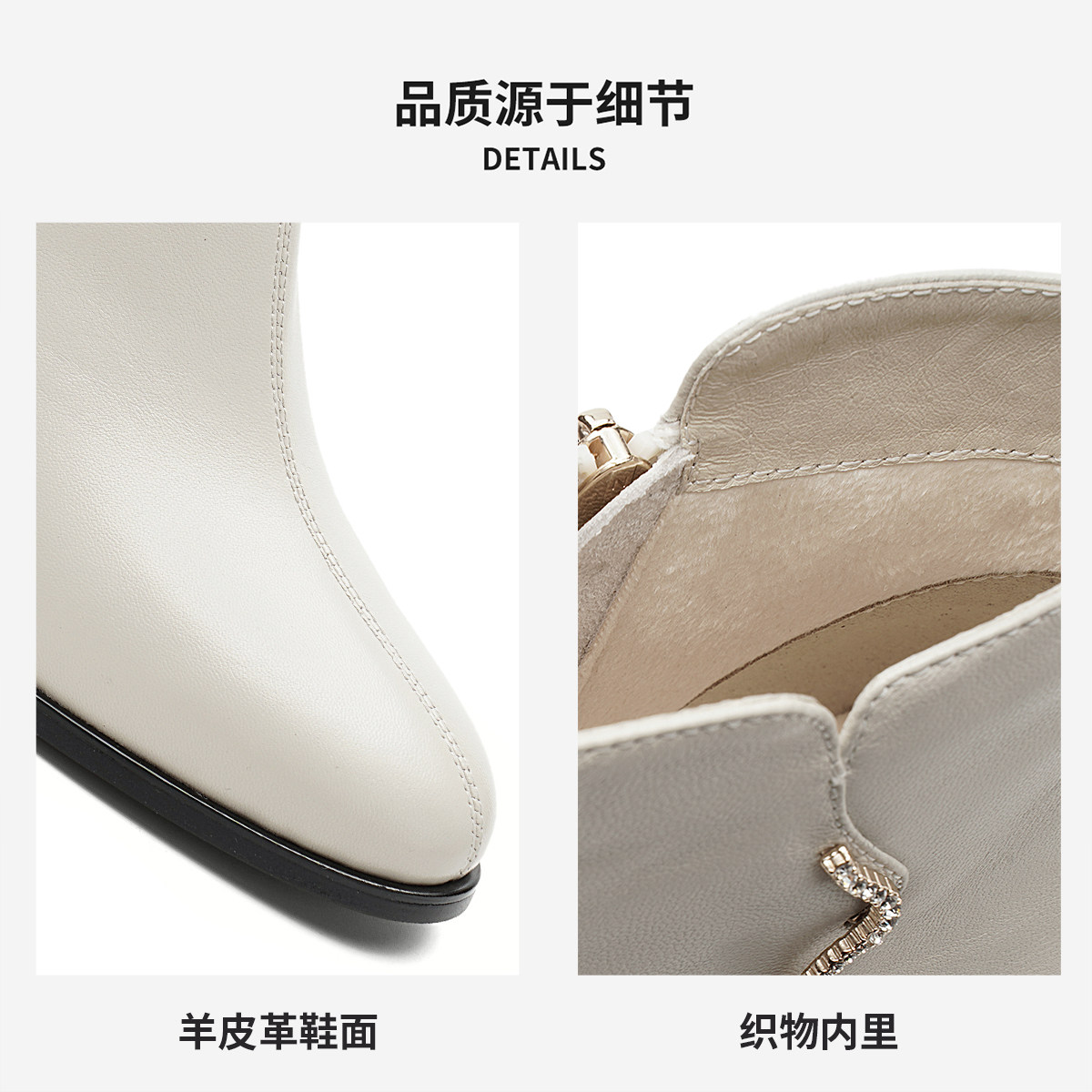 真皮白色高跟短靴女2025秋冬加绒保暖防滑增高粗跟瘦瘦软底马丁靴