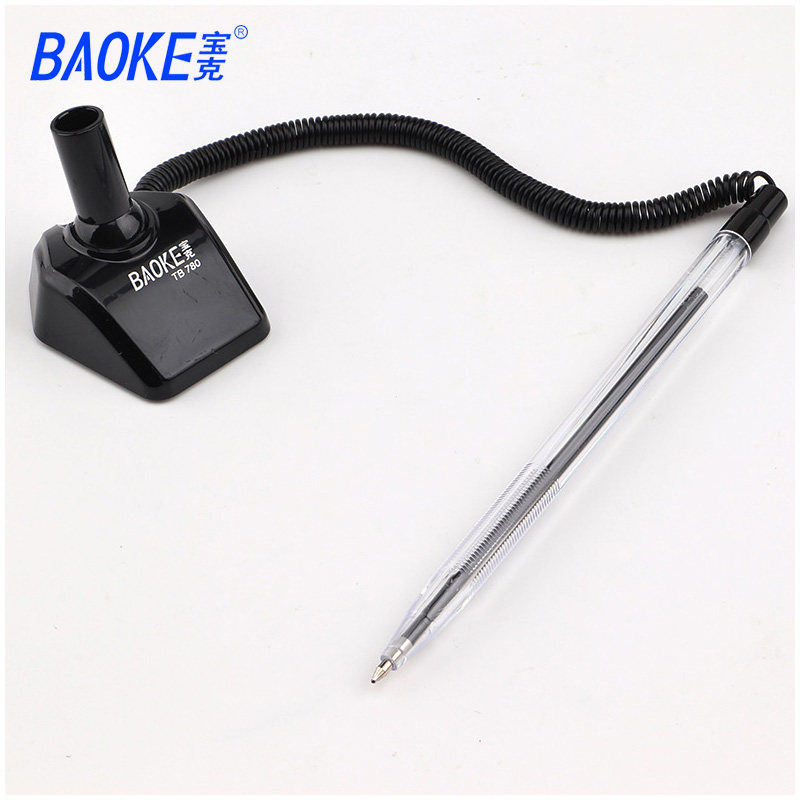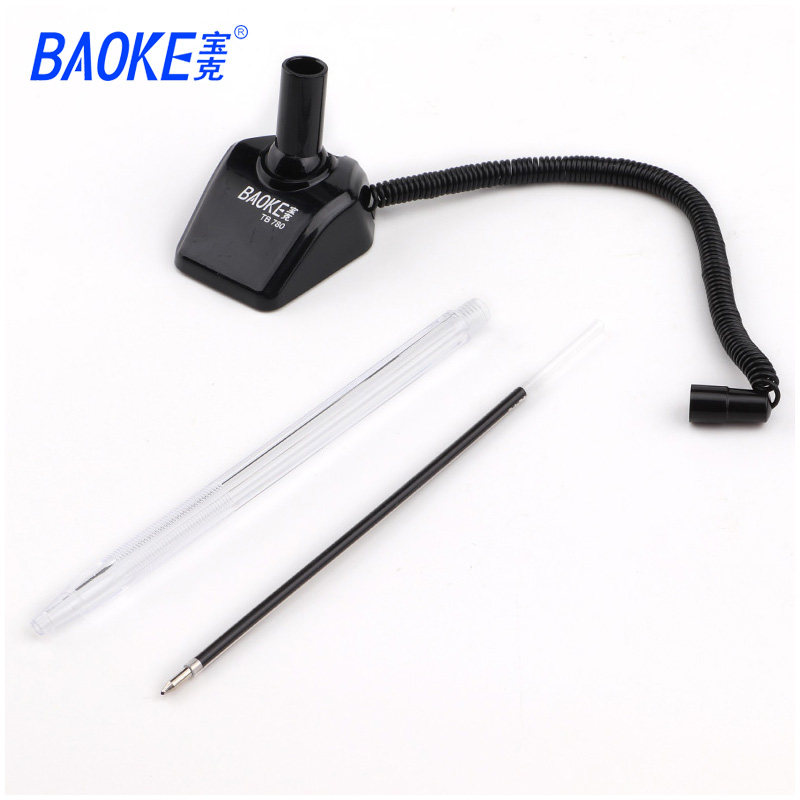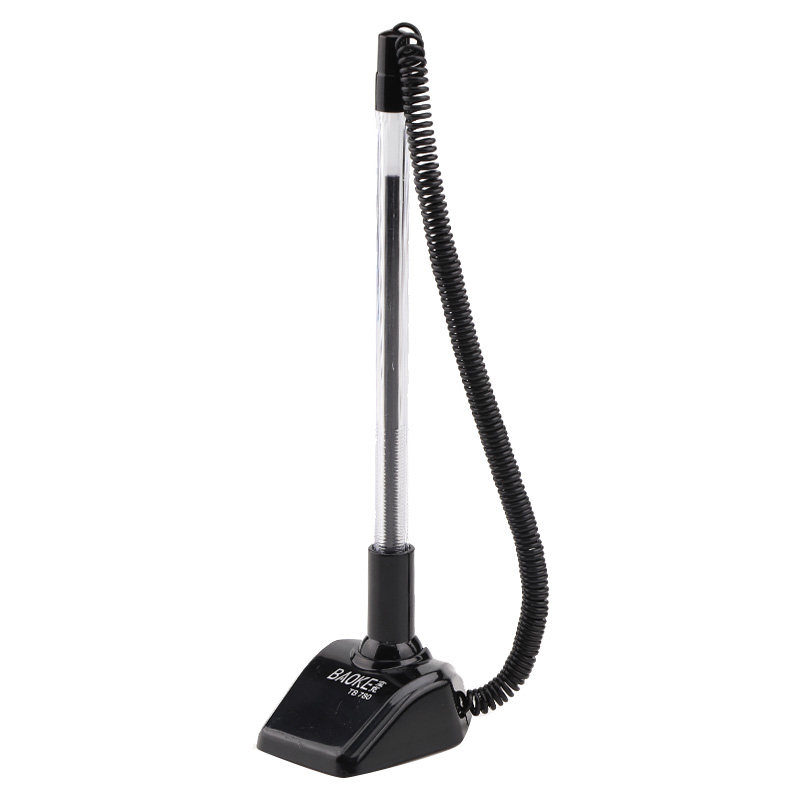 宝克蓝色圆珠笔台笔固定签字笔黑色加原珠笔办公可粘桌面柜台笔台式吧台创意笔商务笔带绳防丢笔文具用品