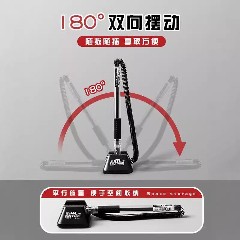 齐心带绳台笔签字笔中性笔前台固定笔座粘在桌子上的笔柜台服务台