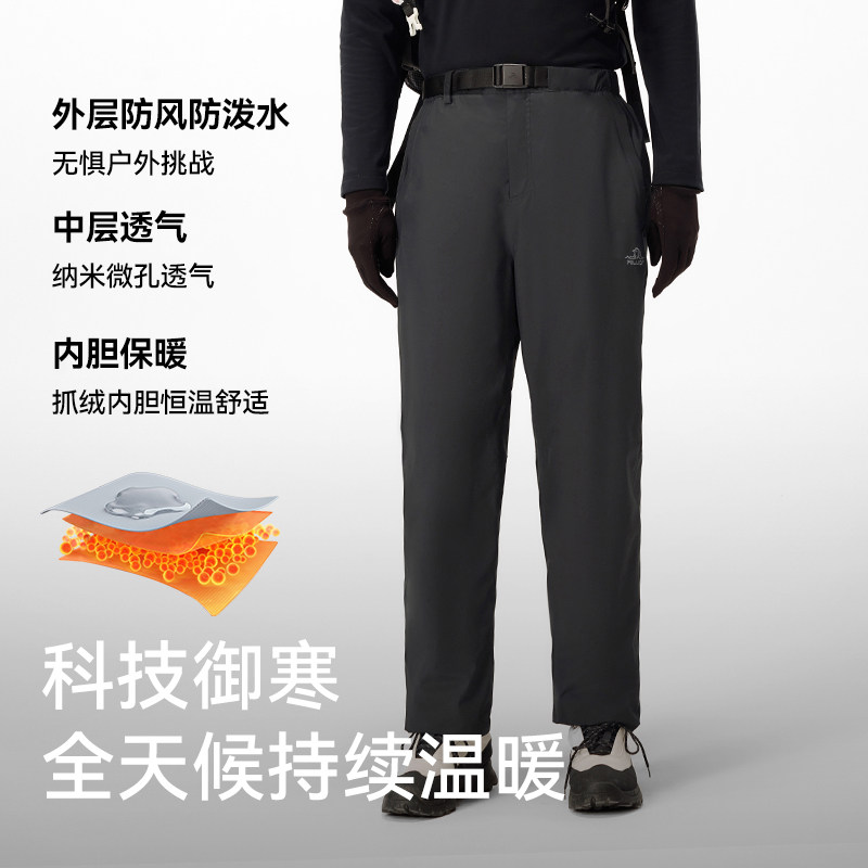BENPANDA 2025冬加绒防泼水休闲裤户外登山伞兵裤直筒裤子男款