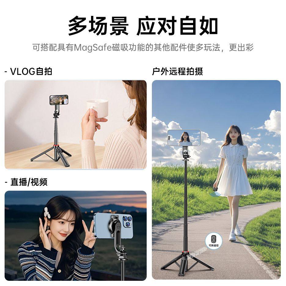 靓点拍Magsafe磁吸自拍杆2025新款迷你旅游便携三脚架拍照神器通用手机360度旋转手持落地适用iphone苹果16