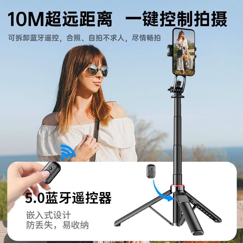 新款手机自拍杆万能防抖拍照神器可伸缩旋转蓝牙通用多功能三脚架