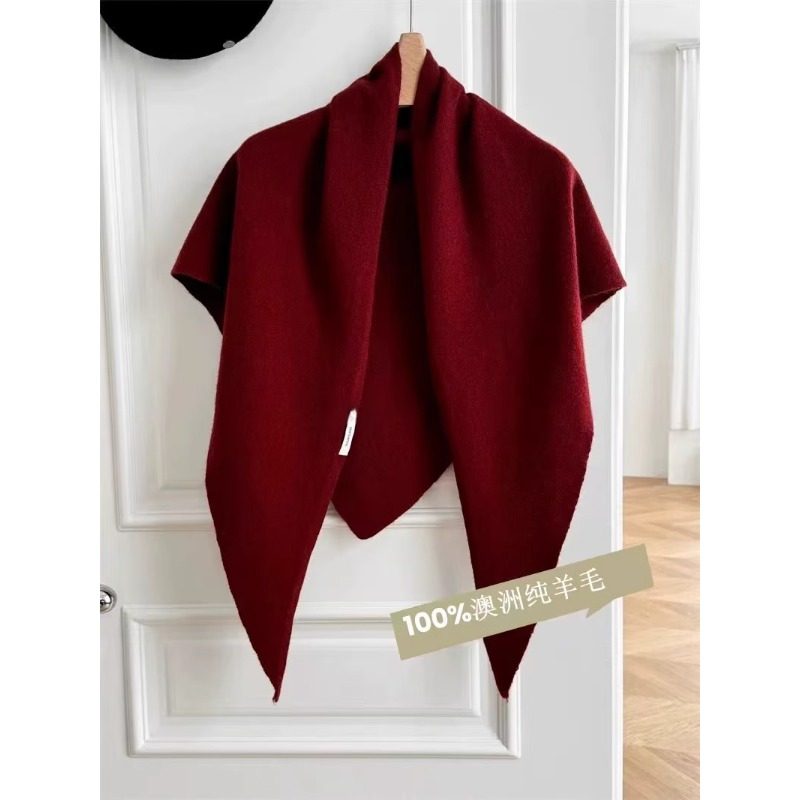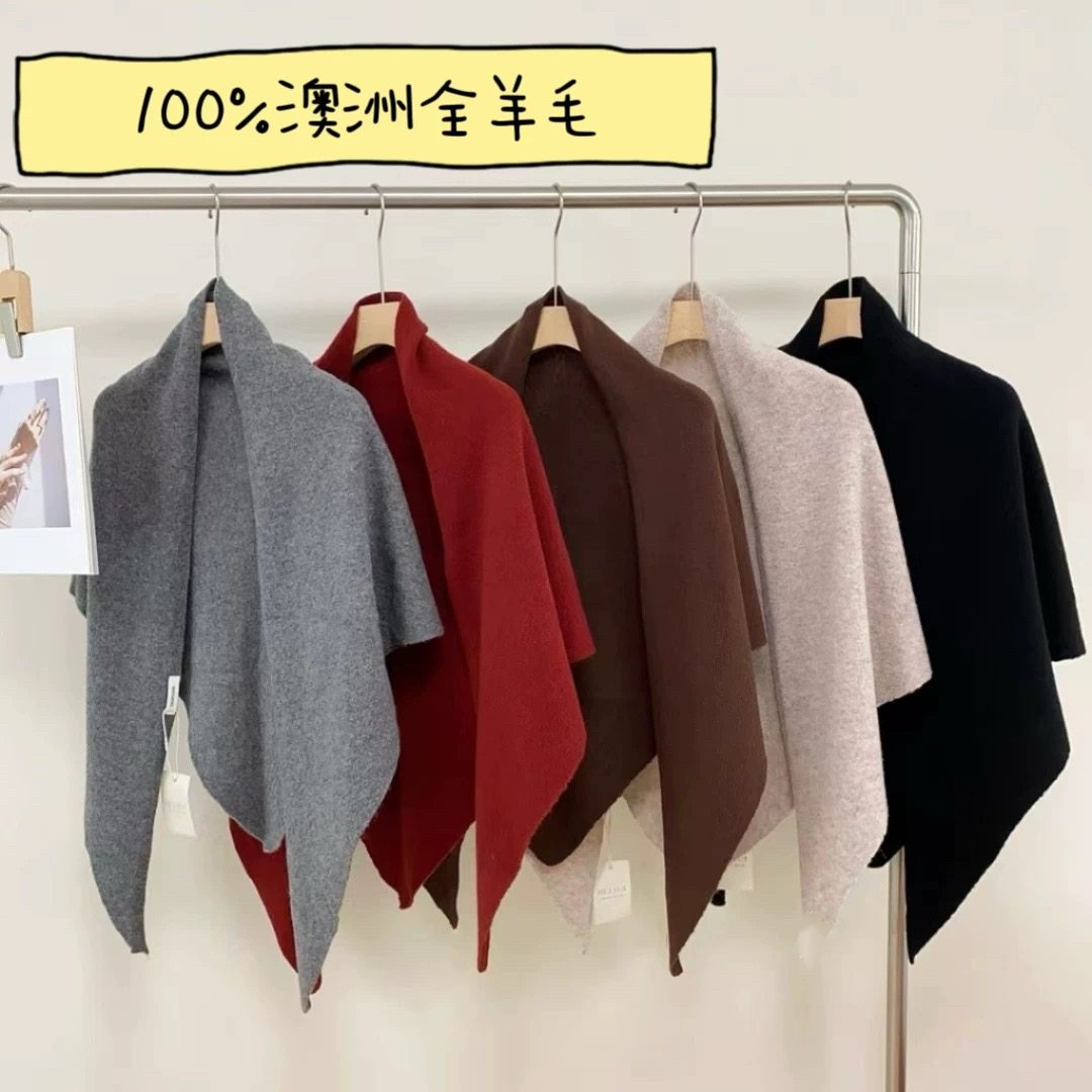 100%纯羊毛三角围巾披肩秋冬季保暖简约百搭高级感外搭护颈肩咖色