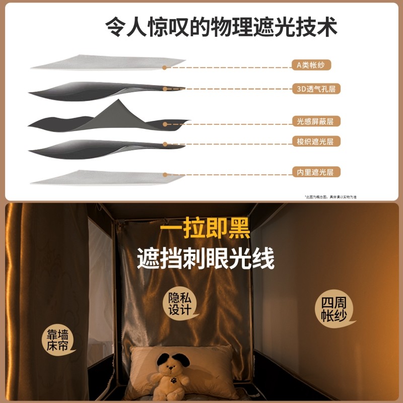 宿舍床帘蚊帐一体式强遮光大学生专用全包寝室床幔上下铺通用上铺