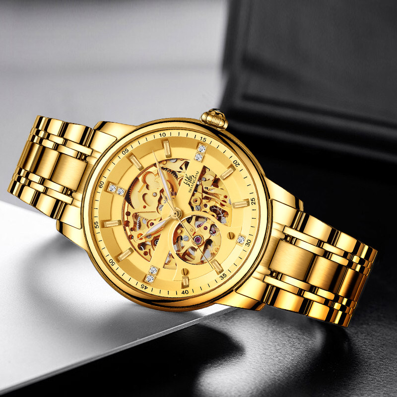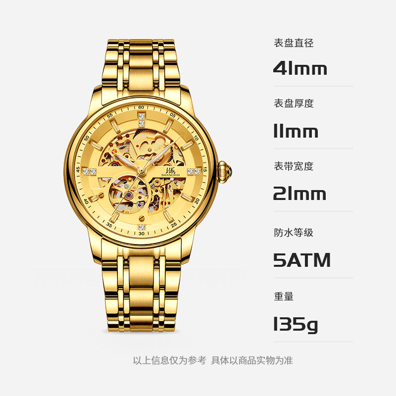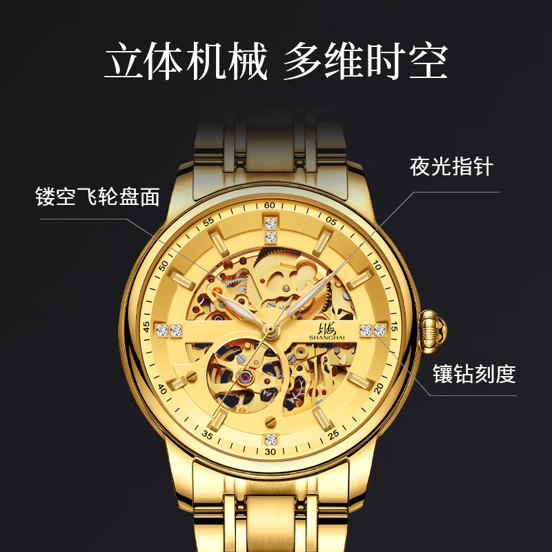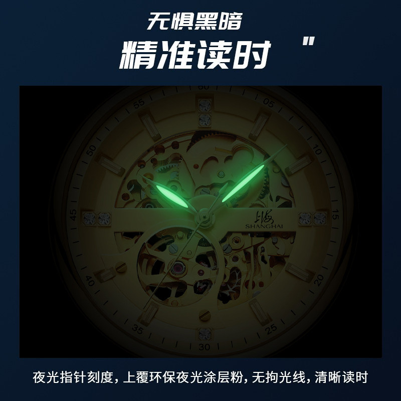 上海手表男款国民系列镶钻镂空自动上链时尚运动机械表8855