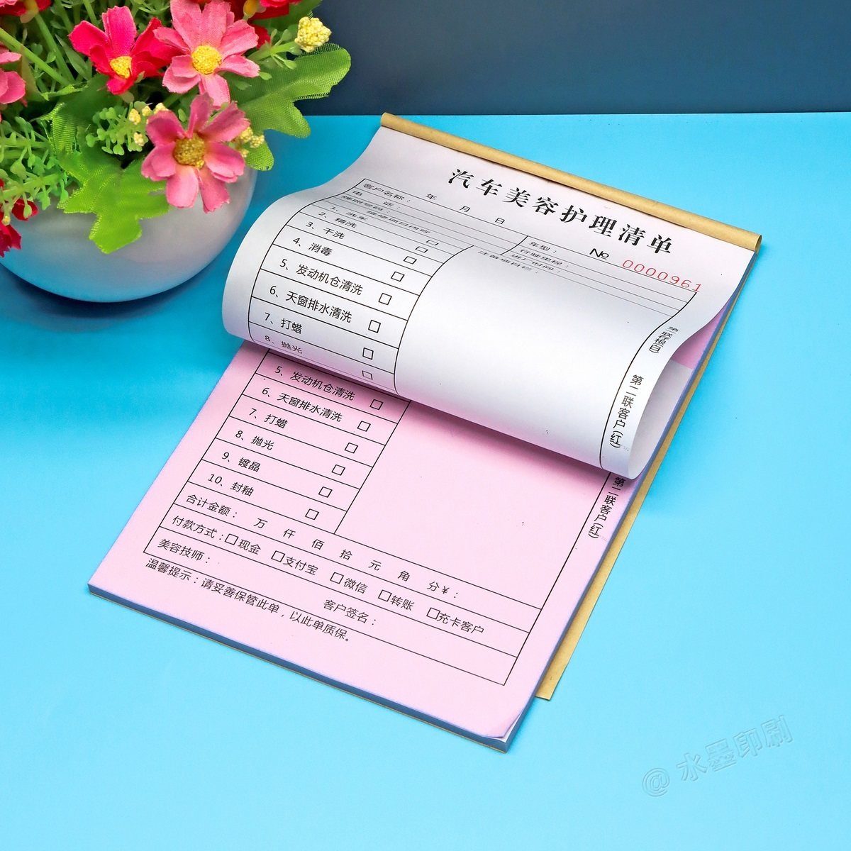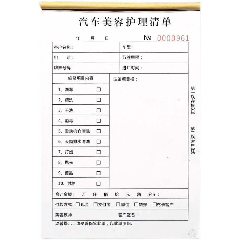 汽车美容护理项目清单二联车辆清洗服务接车单一二三联洗车单定制
